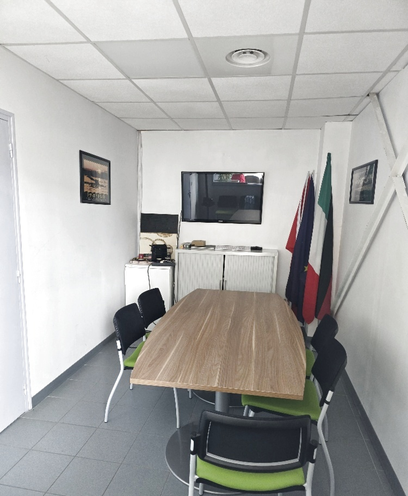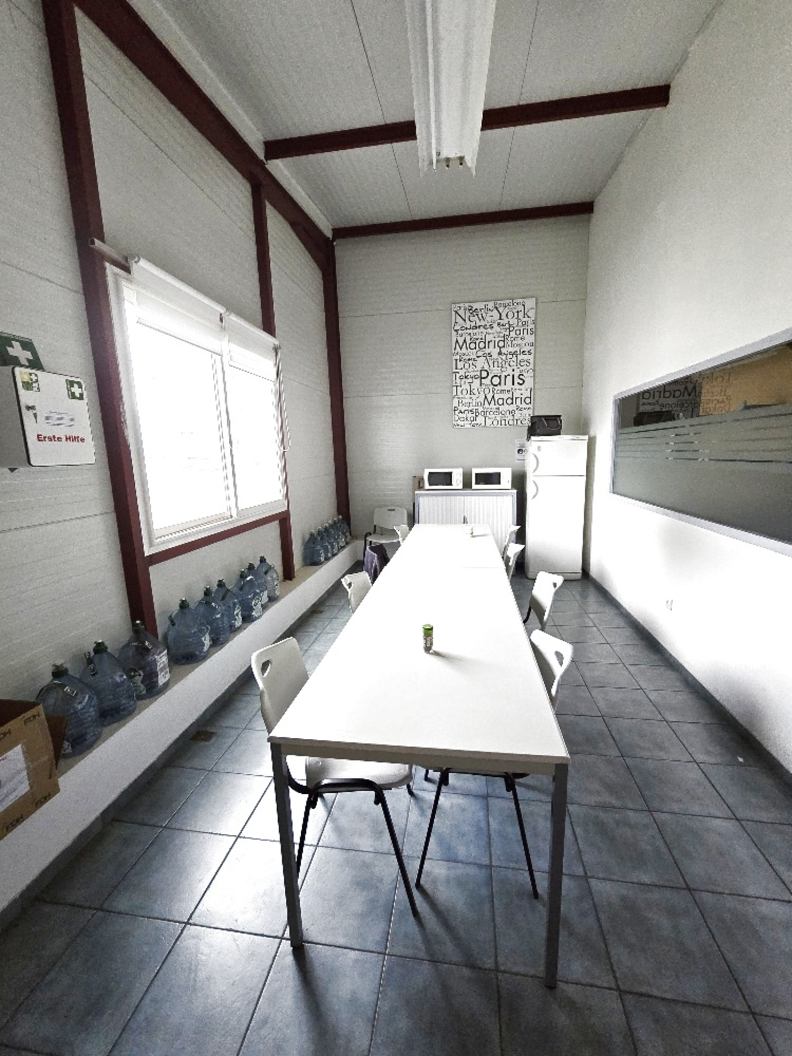 10 bureaux,Salle de réunion,Salle d'attente,Salle de contrôle,Grande cuisine,2 toilettes,Open space pouvant accueillir jusqu’à 6 bureaux supplémentaires,1 Garage et grand entrepôt.
