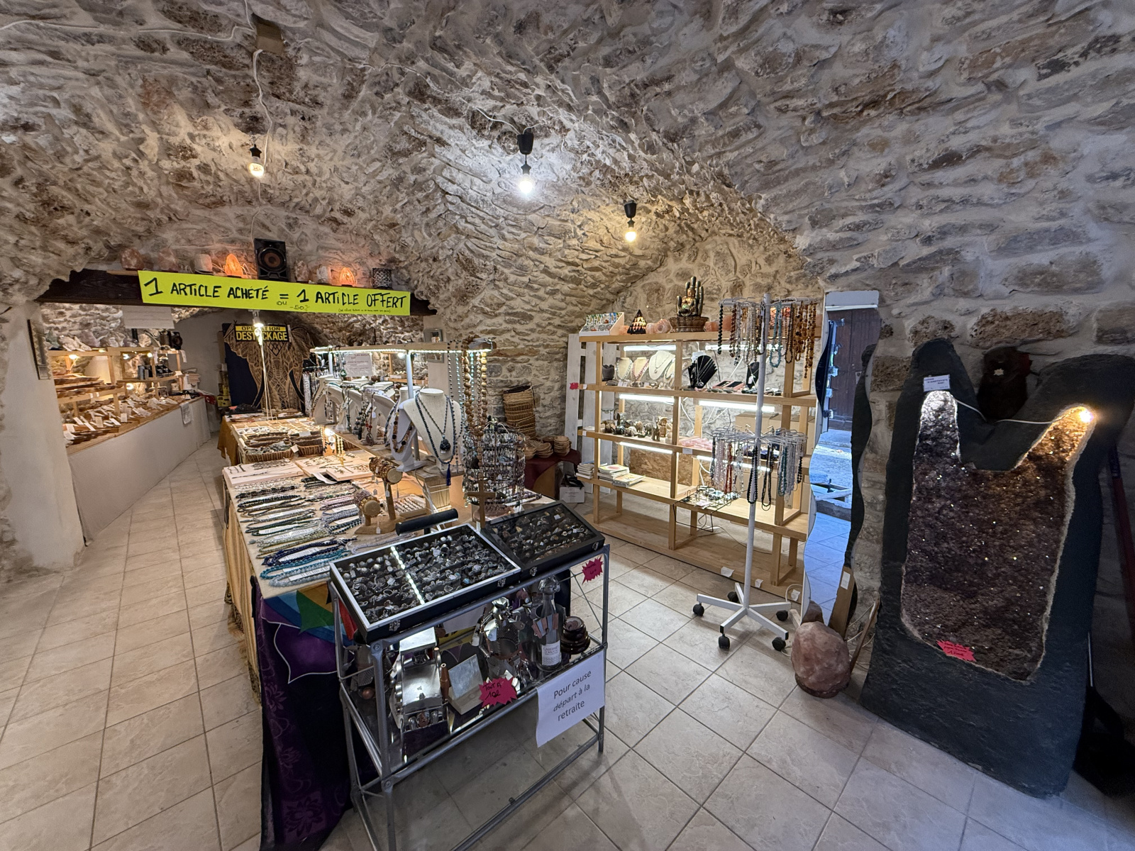Saint-Guilhem-le-Désert (34150)Exclusivitée Laborie Immobilier, dans lieu trés touristique et sur l'axe passant à St Guillhem le desert, cède droit au bail renouvelable en toutes activitées commerciales (sauf restauration cuisson) actuellement vente de mineraux et cristaux de pierre, bijoux fantaisie, souvenirs, ouvert seulement les week-ends et vacances scolaires.