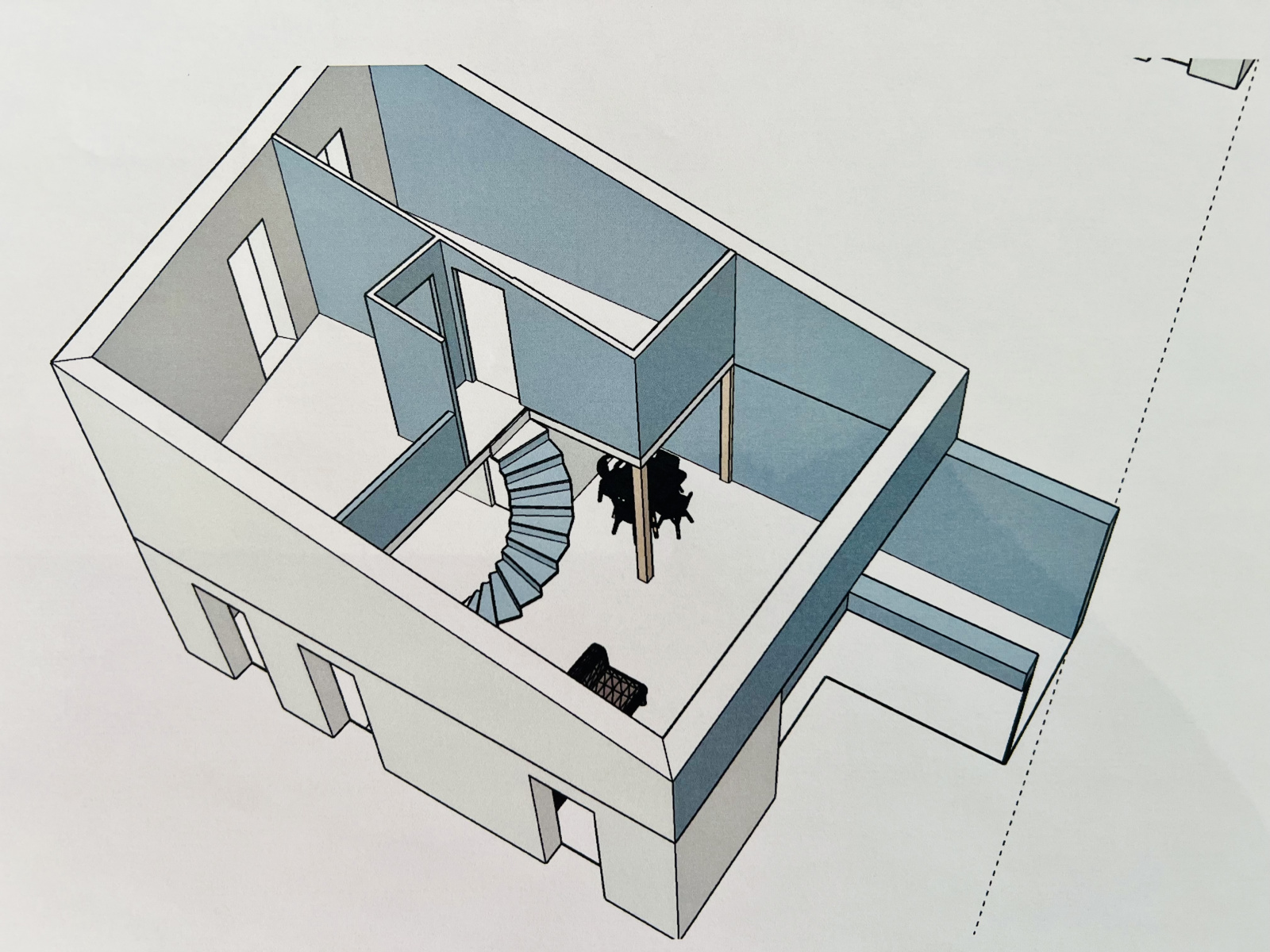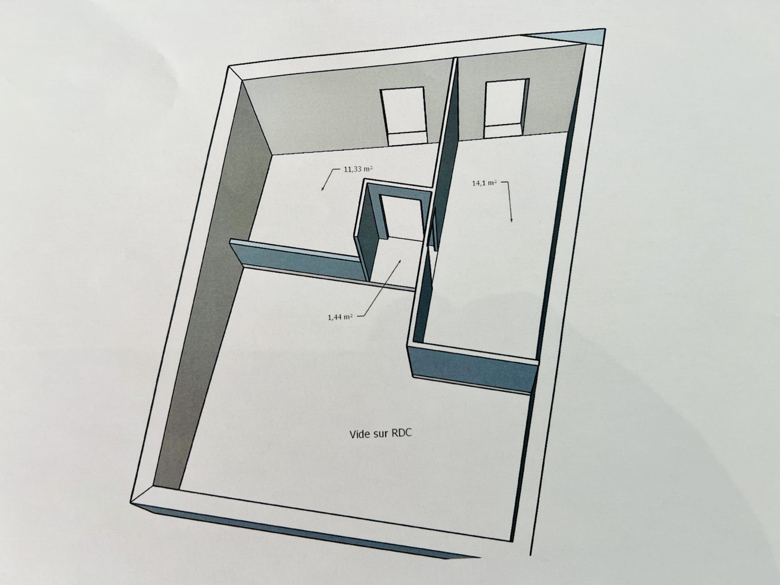 Au premier étage un bureau de 14m2 et un autre bureau de 11.33m2.