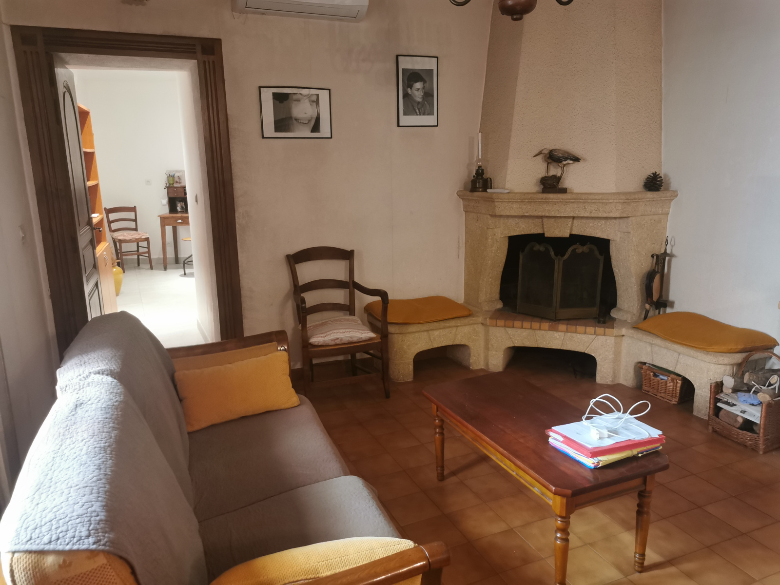 Vous y trouverez deux entrées dont une très récente pour accéder au salon avec son agréable cheminée pour les journées d'hiver. Toujours au même niveau vous aurez la salle d'eau, des WC séparés et une cuisine équipée.