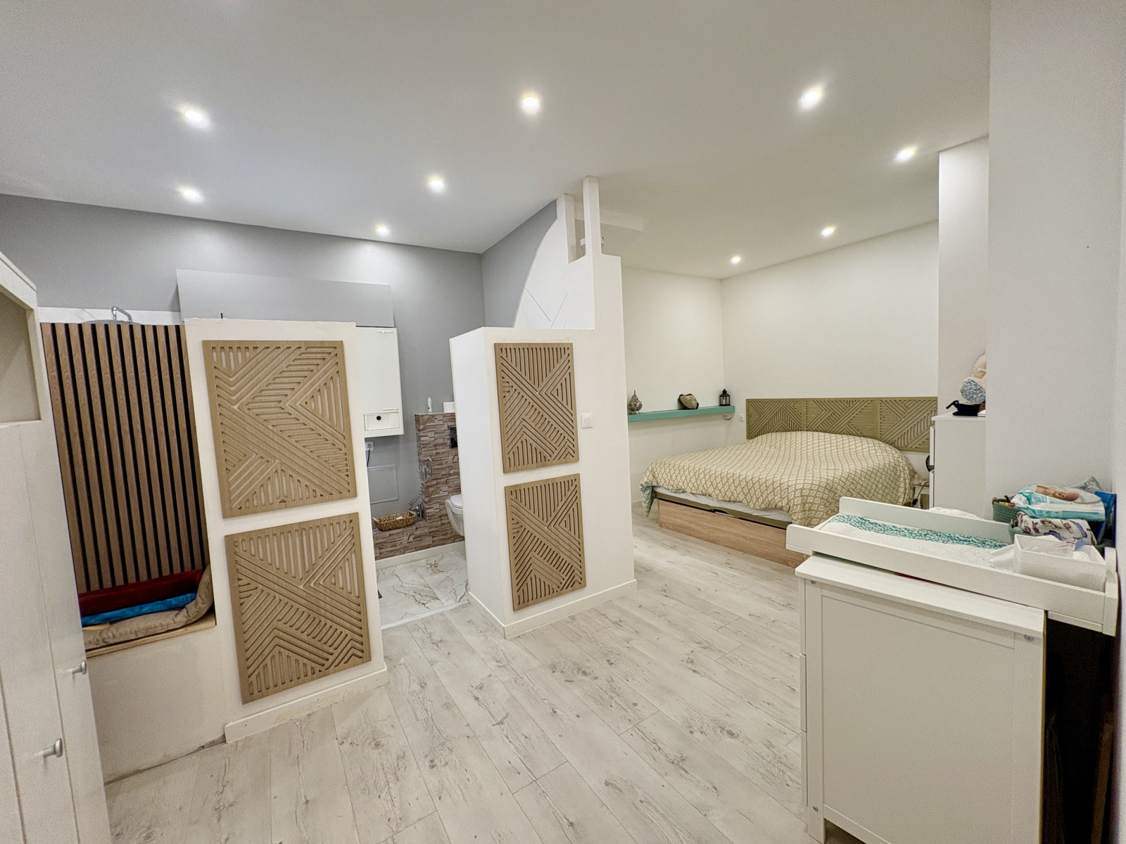 Au rez-de-chaussée, vous serez séduits par une spacieuse suite d’environ 26 m² comprenant une salle d’eau avec WC. Cet espace offre de nombreuses possibilités : accueillir un proche en toute indépendance, exercer une profession libérale ou encore envisager de la location courte durée.