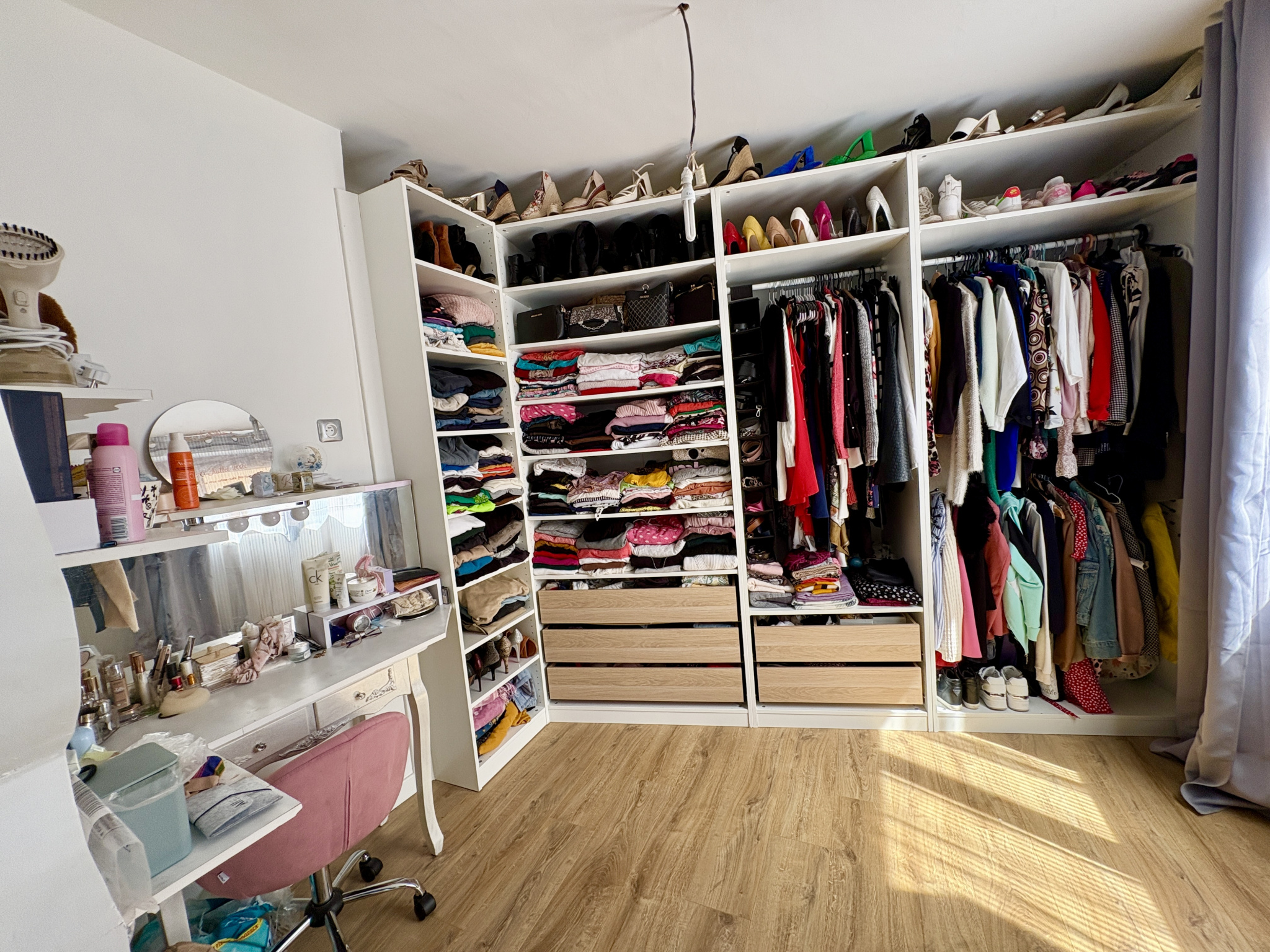 Le deuxième étage propose une grande chambre d’environ 20 m² avec un très vaste dressing, une salle d’eau, un WC séparé ainsi qu’un espace de rangement supplémentaire.