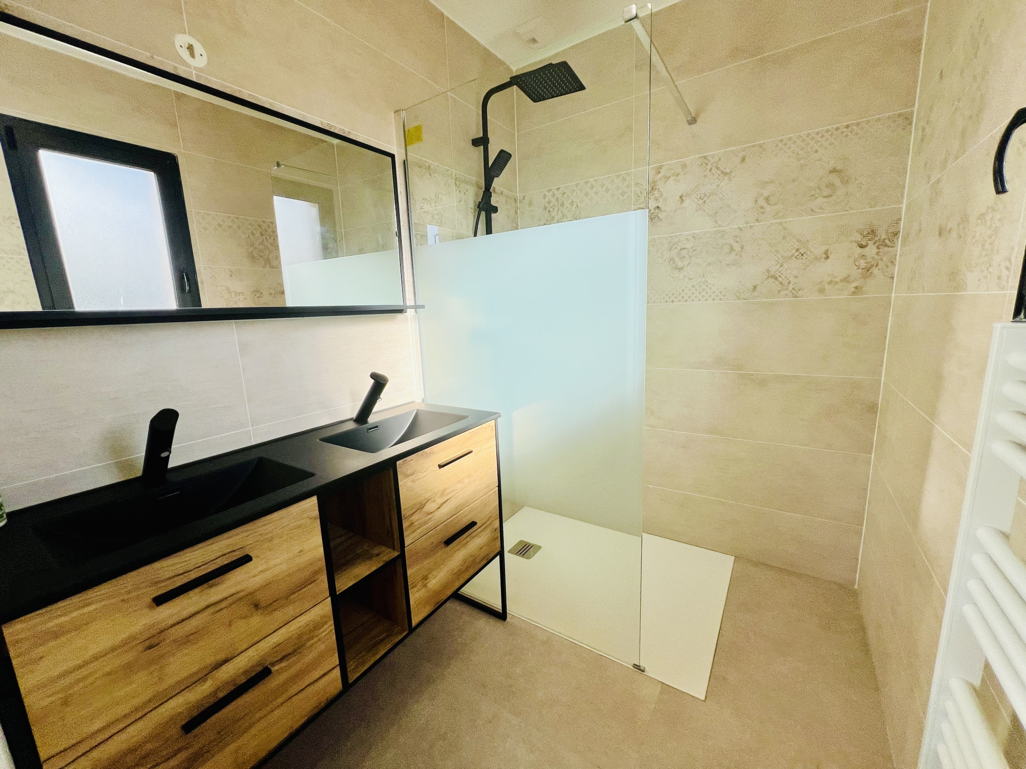 À l’étage, l’espace nuit propose deux chambres confortables avec grands placards intégrés, ainsi qu’une seconde salle de bain et fonctionnelle.
