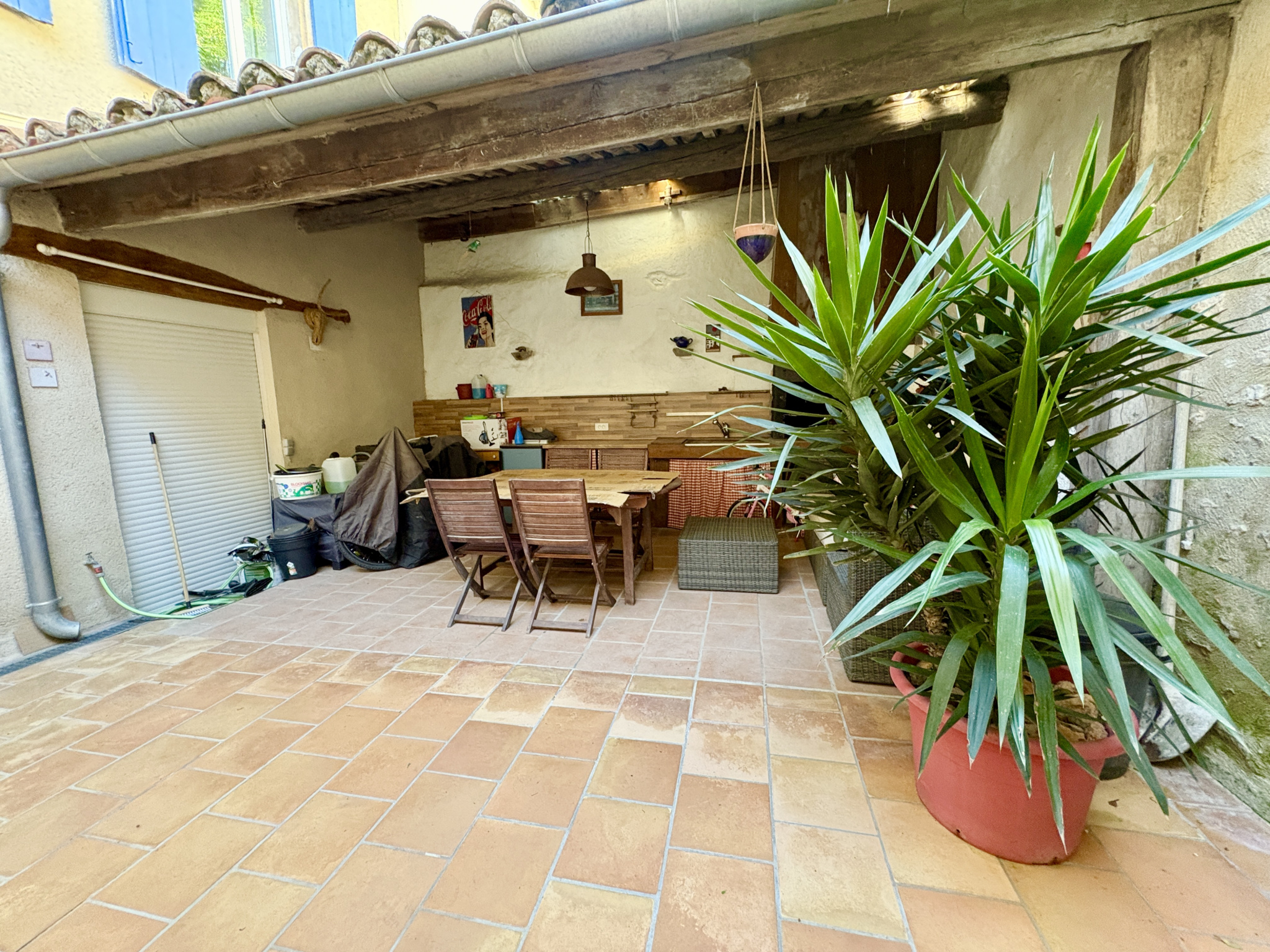 Un grand garage avec eau et électricité complète ce bien, offrant une possibilité de location supplémentaire.
