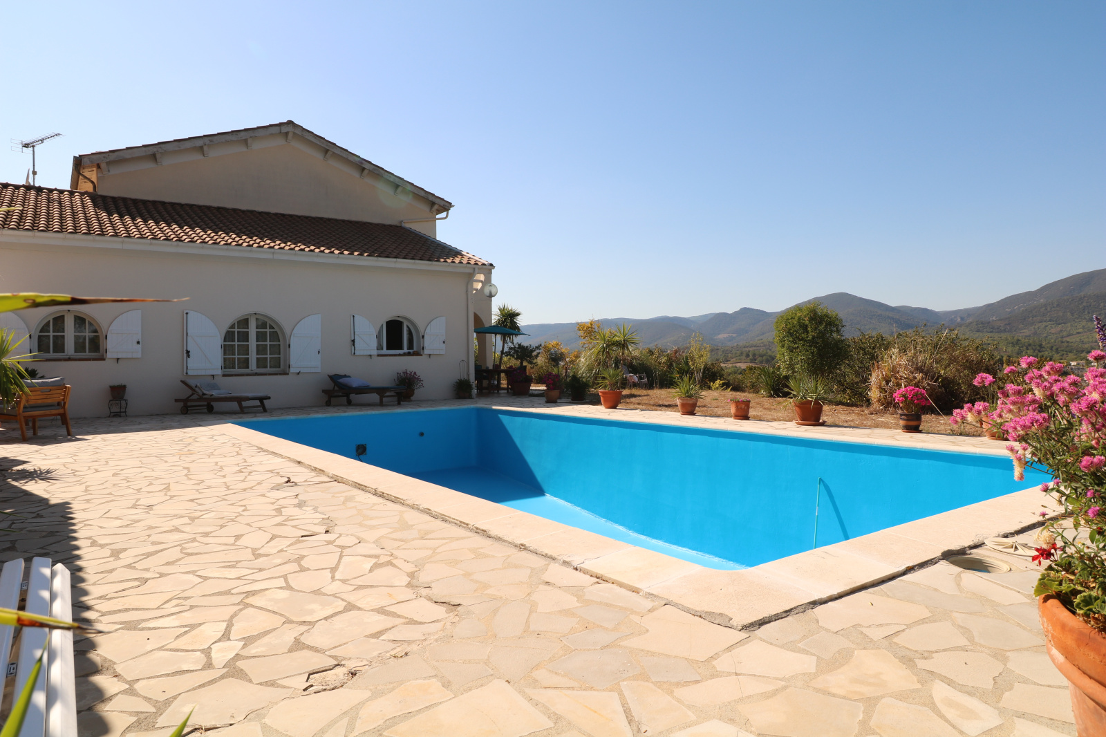Vente magnifique maison T5, 4 chambres, piscine, 2 grands garages, vue dominante, grand terrain, Saint-Chinian