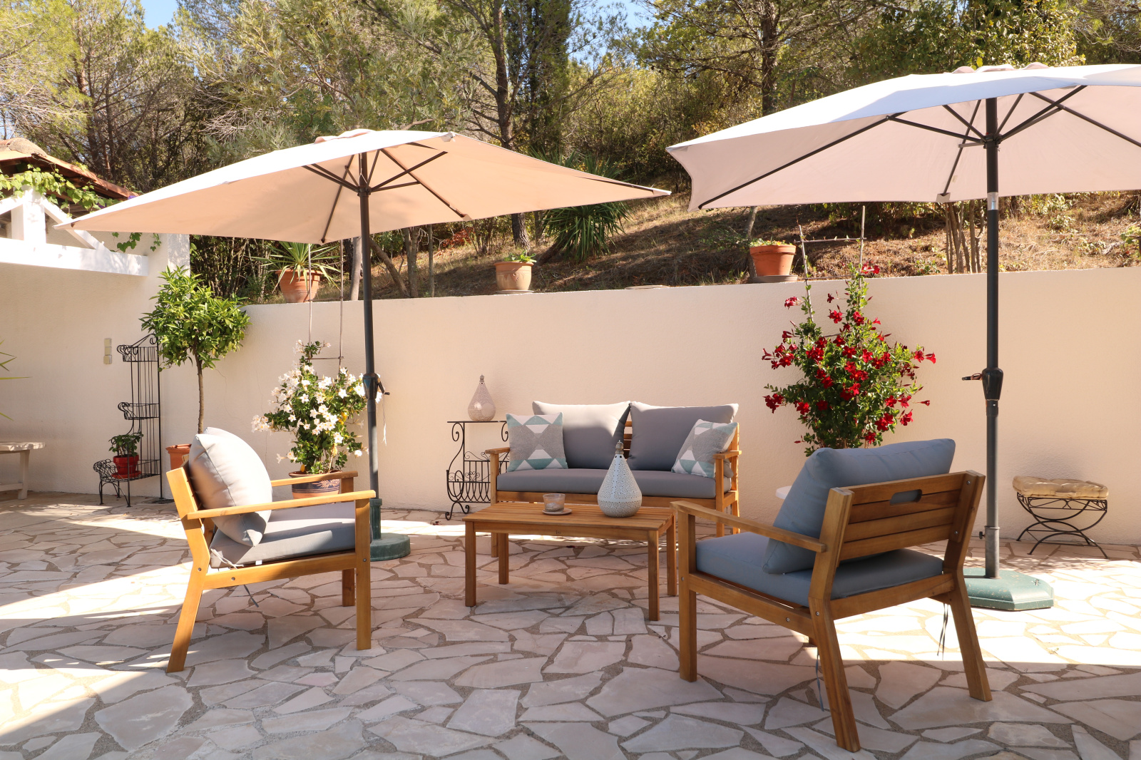 À l’extérieur, le parc paysager de 3 900 m² constitue un véritable havre de paix. D’un côté, la pinède rappelle les douces ambiances estivales, tandis que de l’autre, les jardins de garrigue ajoutent une touche méditerranéenne authentique. Que vous vous détendiez au bord de la grande piscine, sur les chaises longues du pool house, ou sur le canapé extérieur avec une boisson rafraîchissante à la main, vous serez constamment émerveillés par la vue panoramique exceptionnelle qui s’offre à vous.