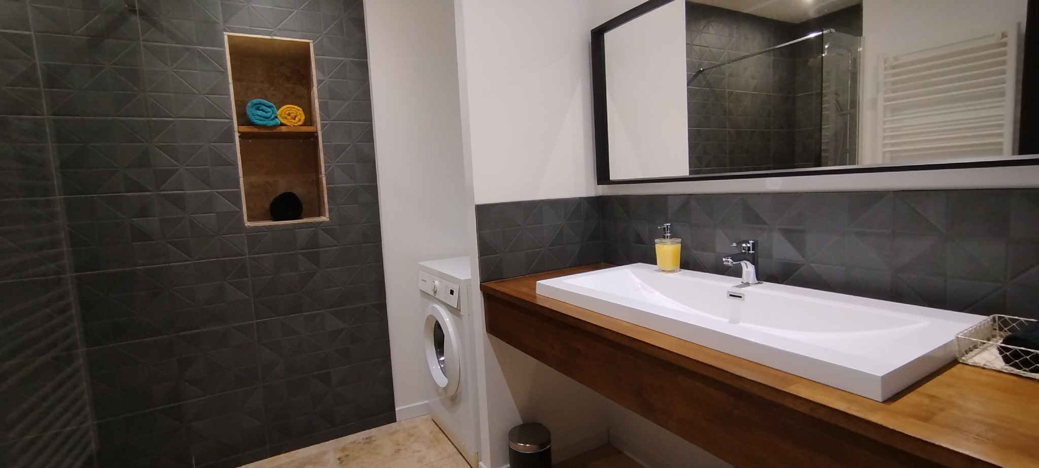 La pièce de vie lumineuse s'ouvre sur une cuisine équipée dans un esprit contemporain , l'espace nuit comprend une chambre de 17 m² , élégante et apaisante , ainsi qu'une salle d'eau avec douche à l'italienne .