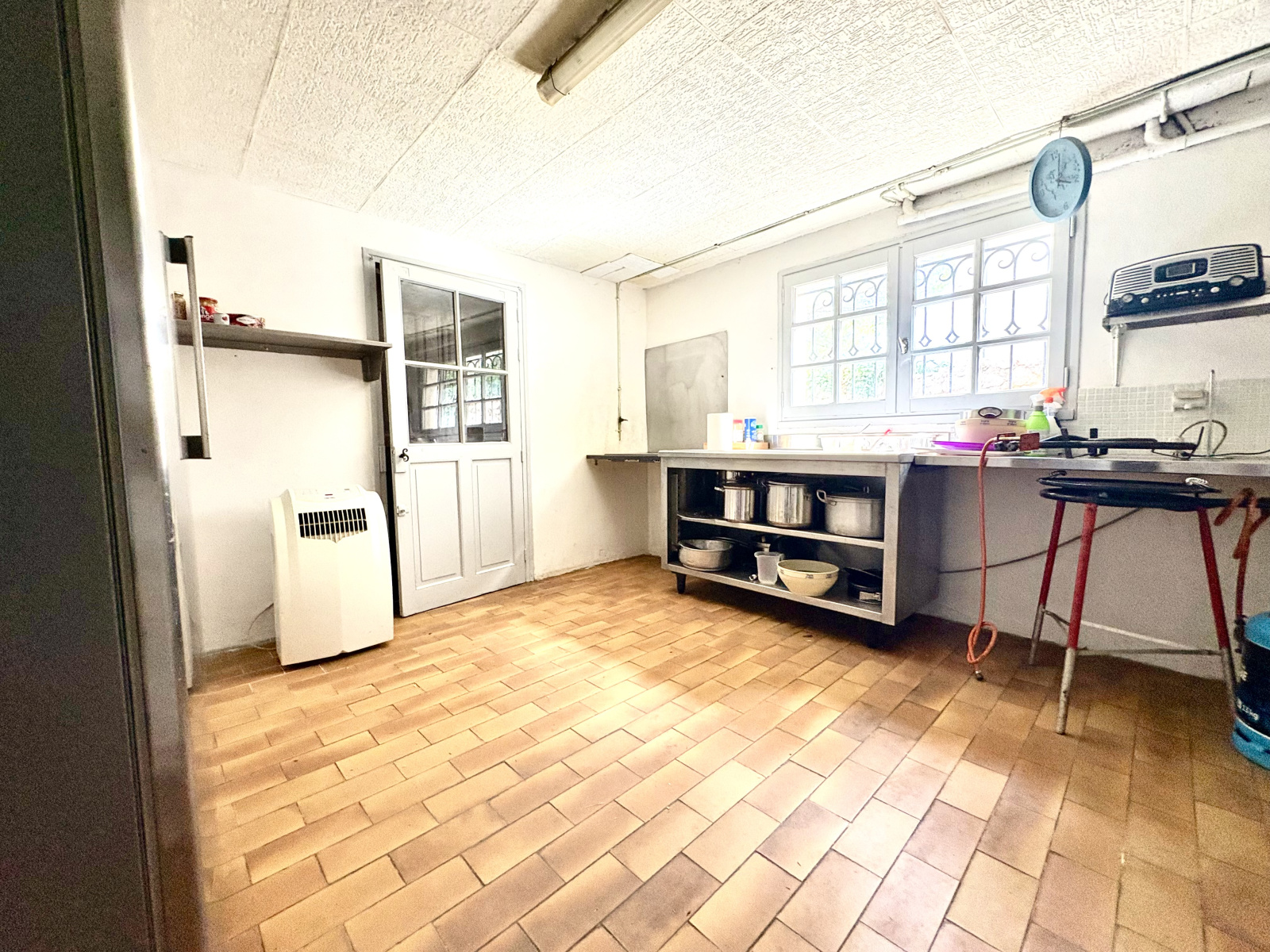 Un garage de 83 m2 vous permettra d'y garer plusieurs vehicules ainsi que de nombreux espaces de rangement. Une cuisine équipée se situe également dans le garage et le tout donnant accès directement sur le jardin. Coté exterieur, un agréable jardin au calme vous permtra de passer des joli moments lors de belles journées ensoleillées. De plus un puit avec pompe de relevage est accessible depuis le garage permettant un arrosage quasi toute l'année.
