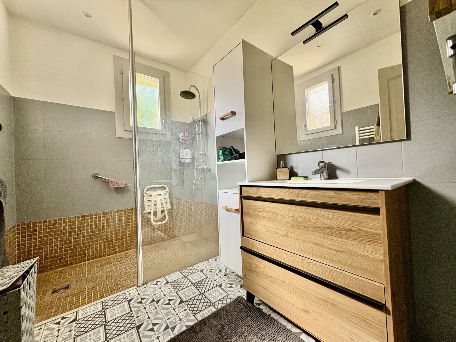 Fenêtres bois double vitrage , climatisation, cheminée , volets electrique, grand garage, portail électrique, sont de très bon atous qui compose ce bien.