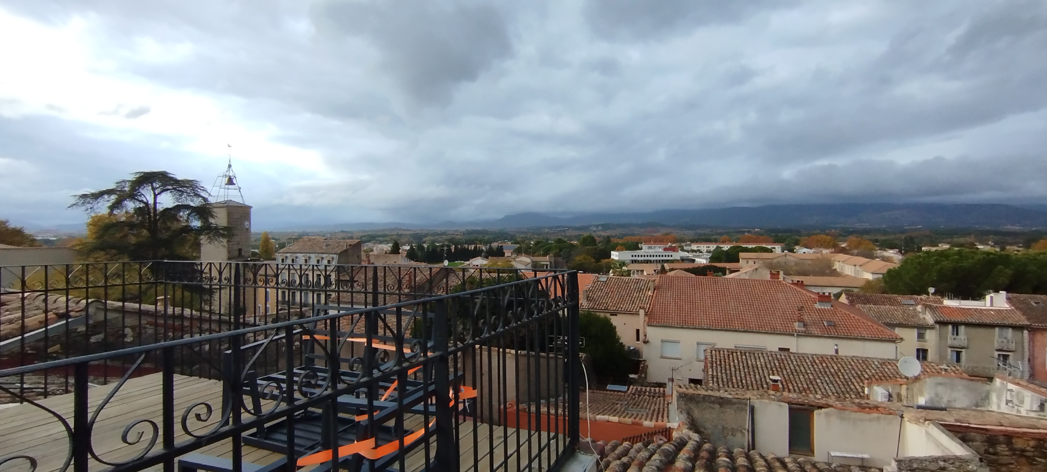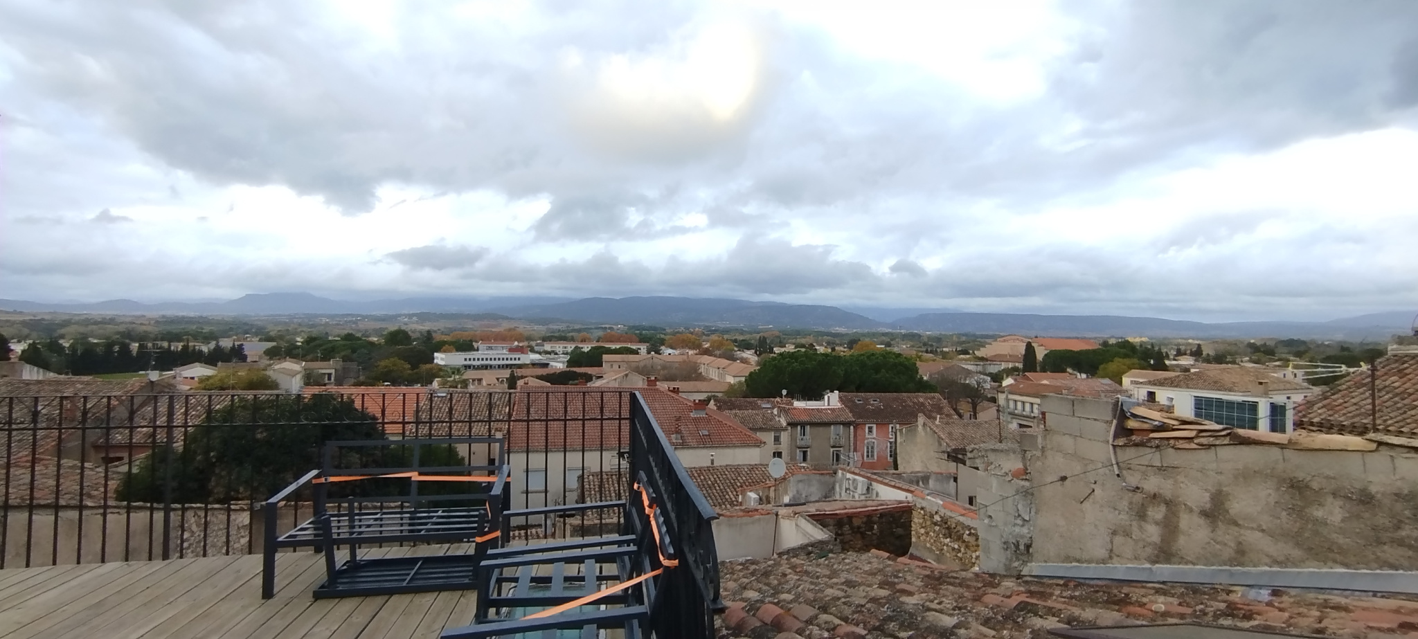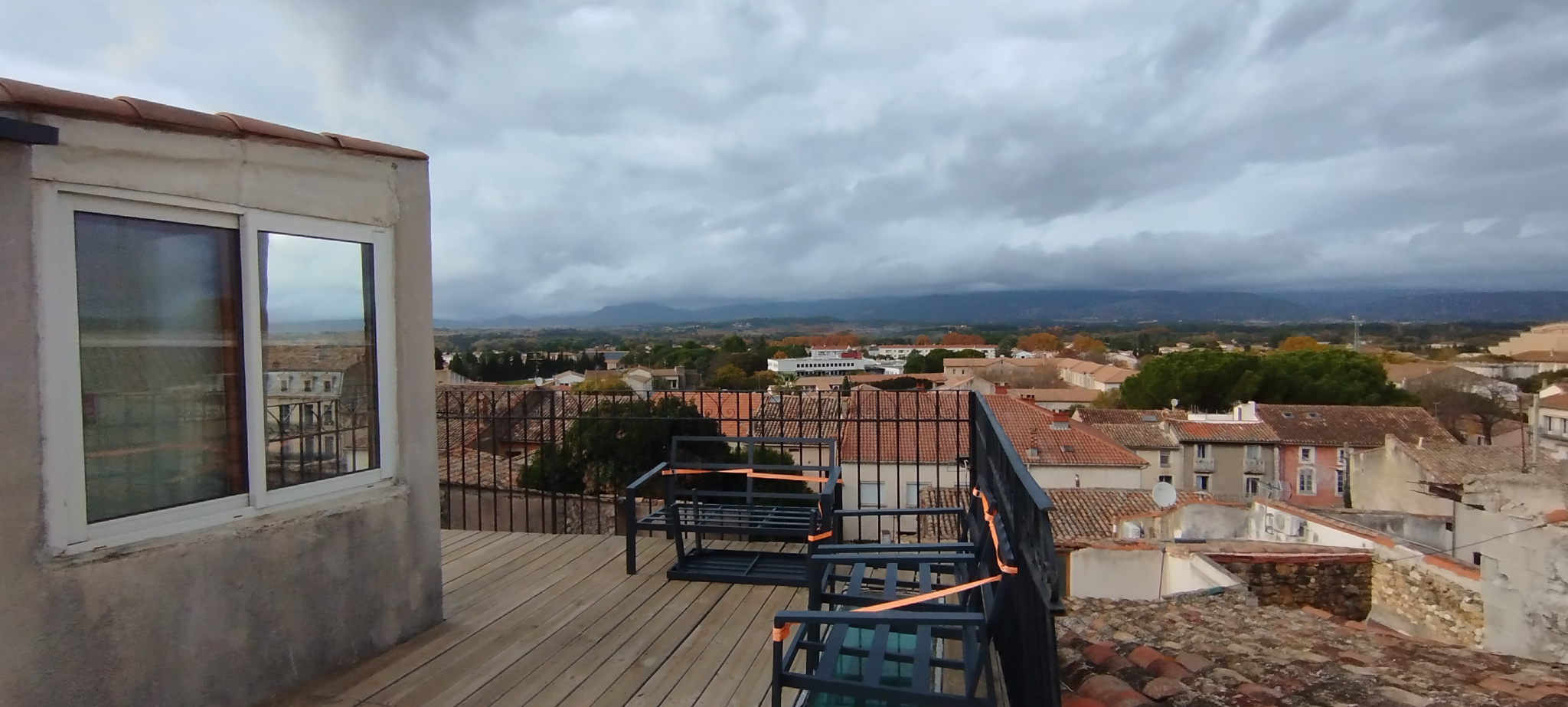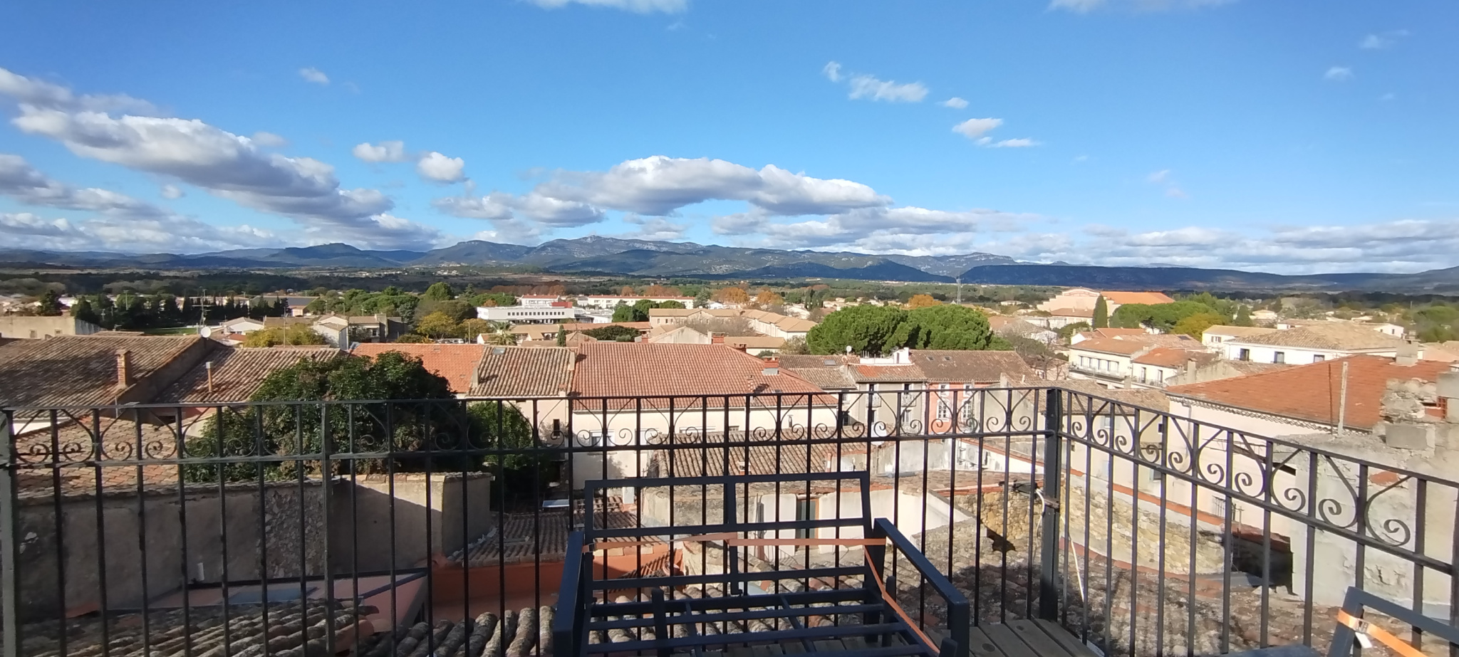 La terrasse tropézienne de 11m² surplombe les toits de Gignac et offre une vue imprenable , parfaite pour profiter des beaux jours .