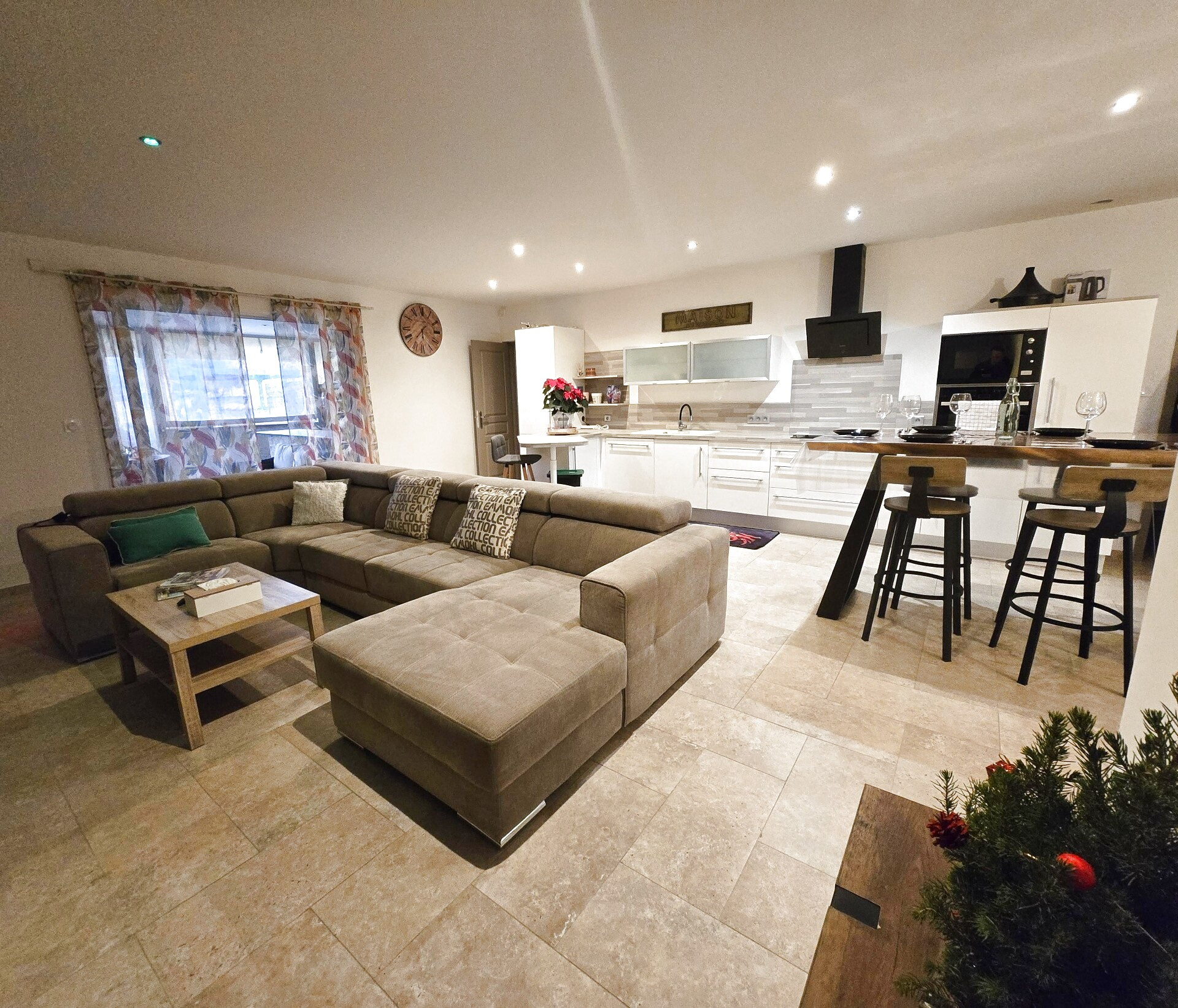 La villa est composée d'un hall d'entrée désservant un grand salon salle à manger avec sa cuisine ouverte entièrement équipée, le tout donnant sur une grande terrasse de 44 m² et son jardin paysagé sans aucun entretien , avec sa piscine sans vis à vis 8x4 et 3x2 pool house , deux barbecue , pergola