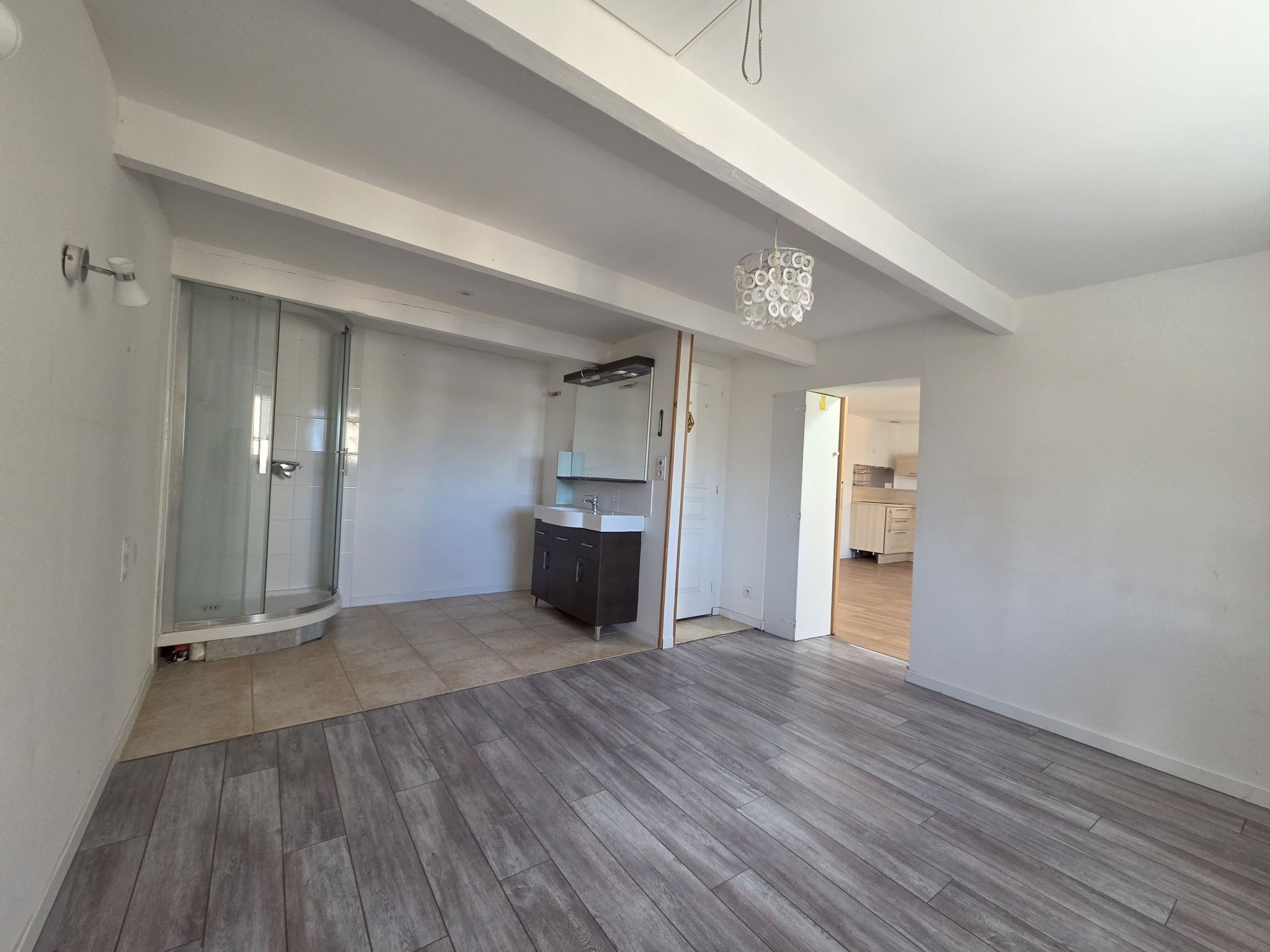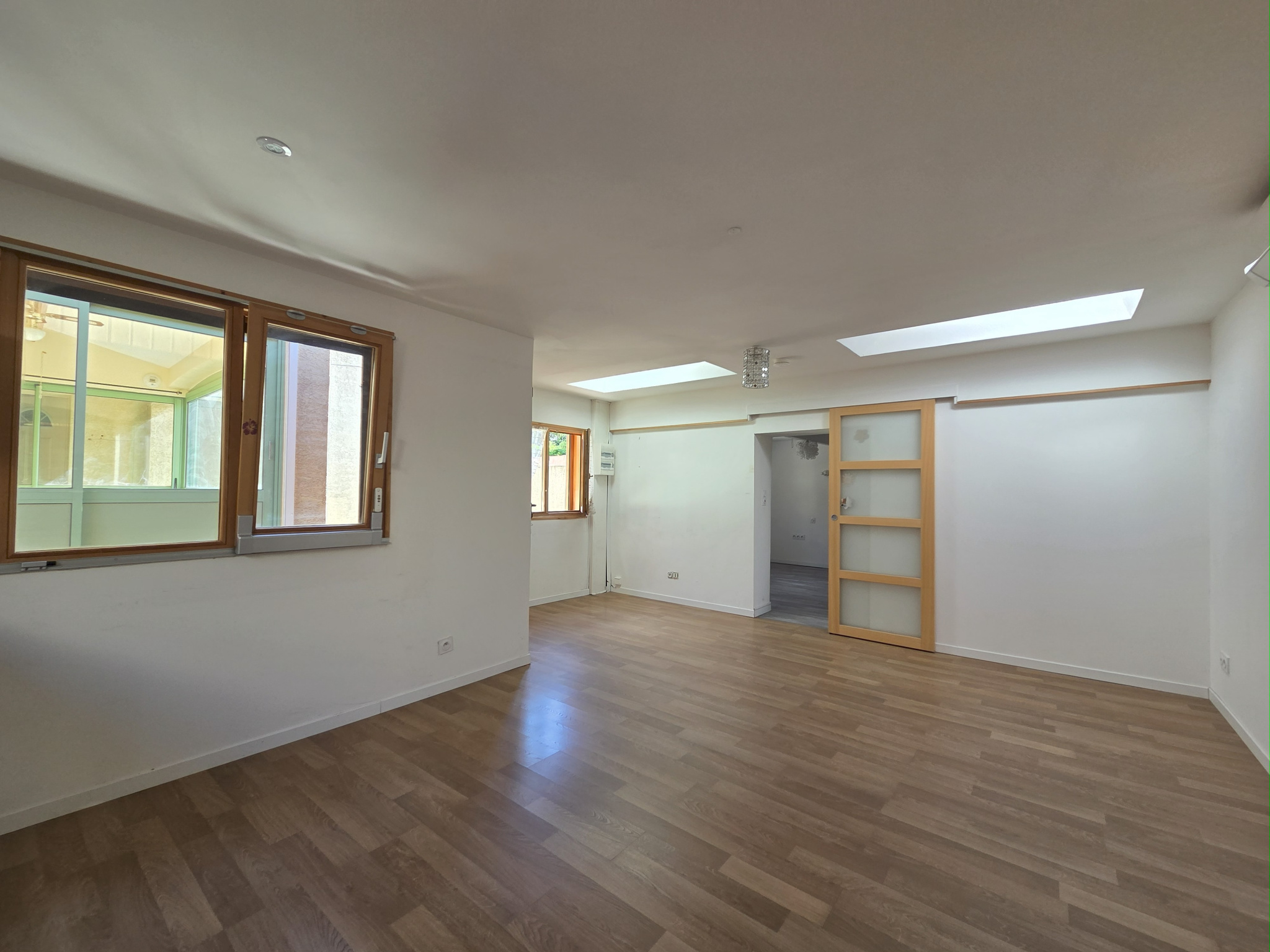 Habitation principale : Hall d'entrée, salon/cuisine d'environ 32 m², une véranda de 12m², une première chambre de 11,50 m² donnant sur un petit jardin privatif, un WC séparé, une salle d'eau avec douche italienne, une deuxième chambre 13 m² avec mezzanine.