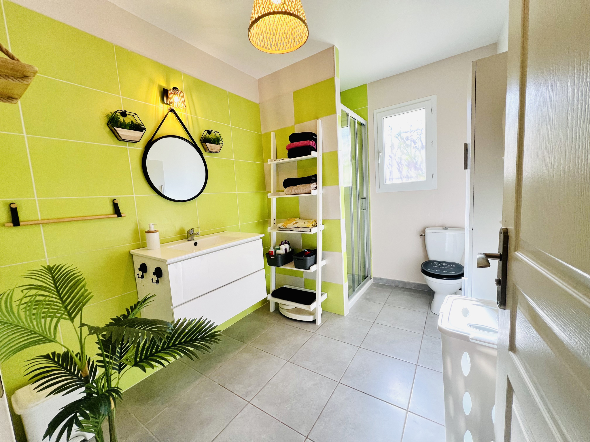 La maison se compose de 5 chambres aux volumes généreux, permettant à chacun de bénéficier d’un espace de vie agréable et intime. Trois salles de bains complètent l’ensemble, garantissant un confort optimal au quotidien.