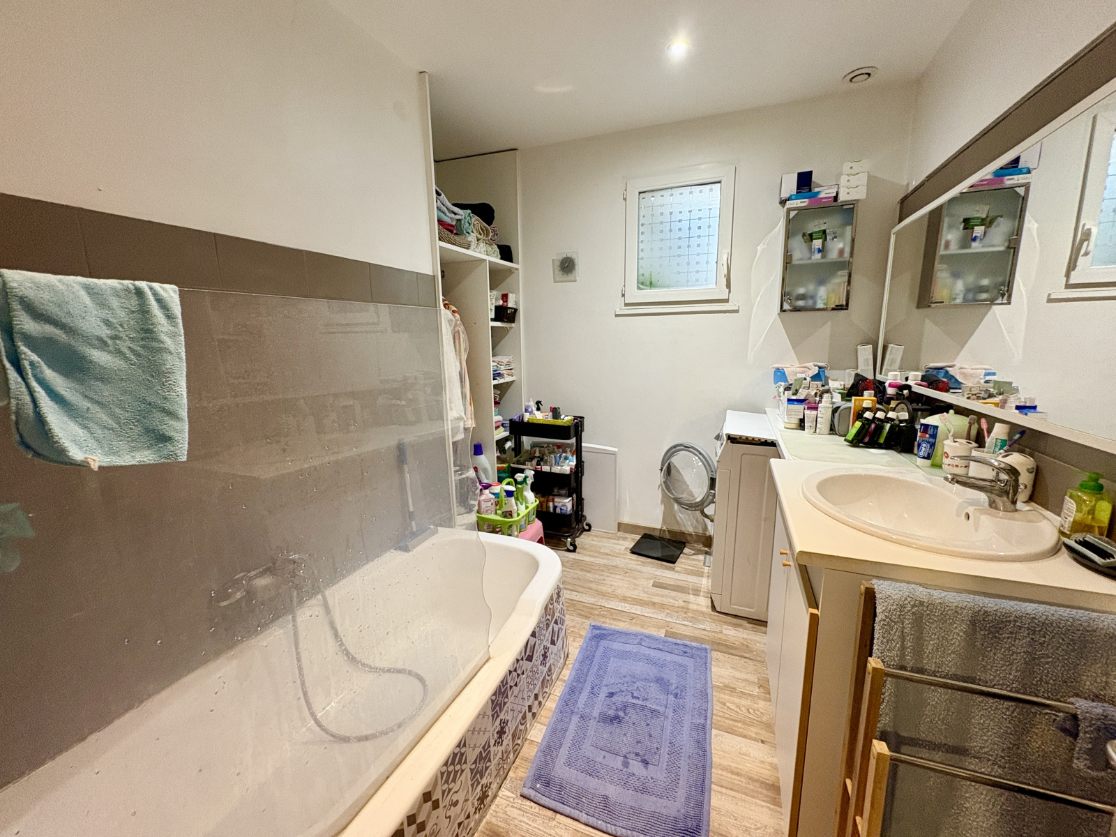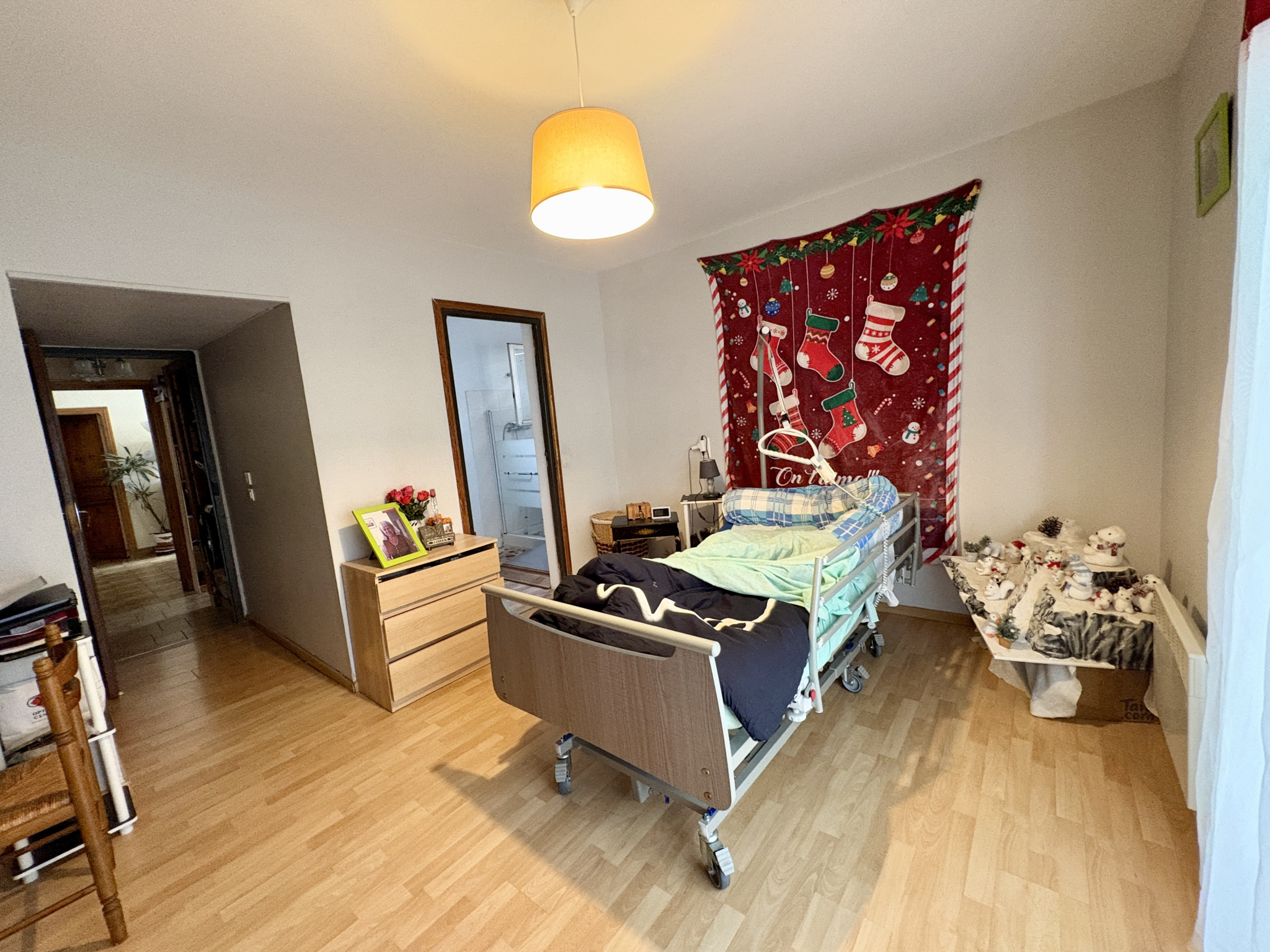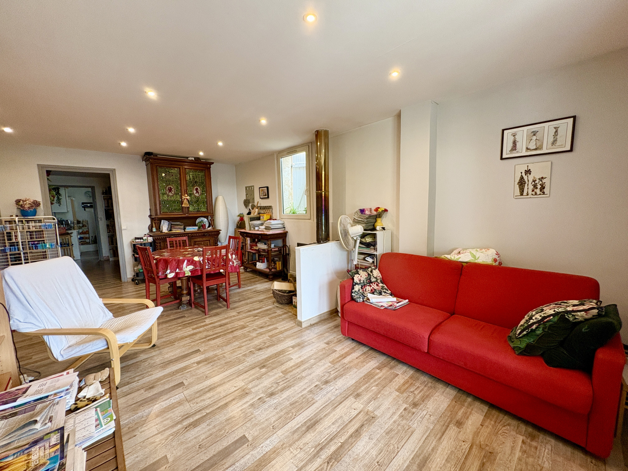 Au premier étage, un second logement de 115 m², loué 850 € par mois. Ce niveau nécessite un rafraîchissement global, permettant d’envisager une revalorisation intéressante à moyen terme.