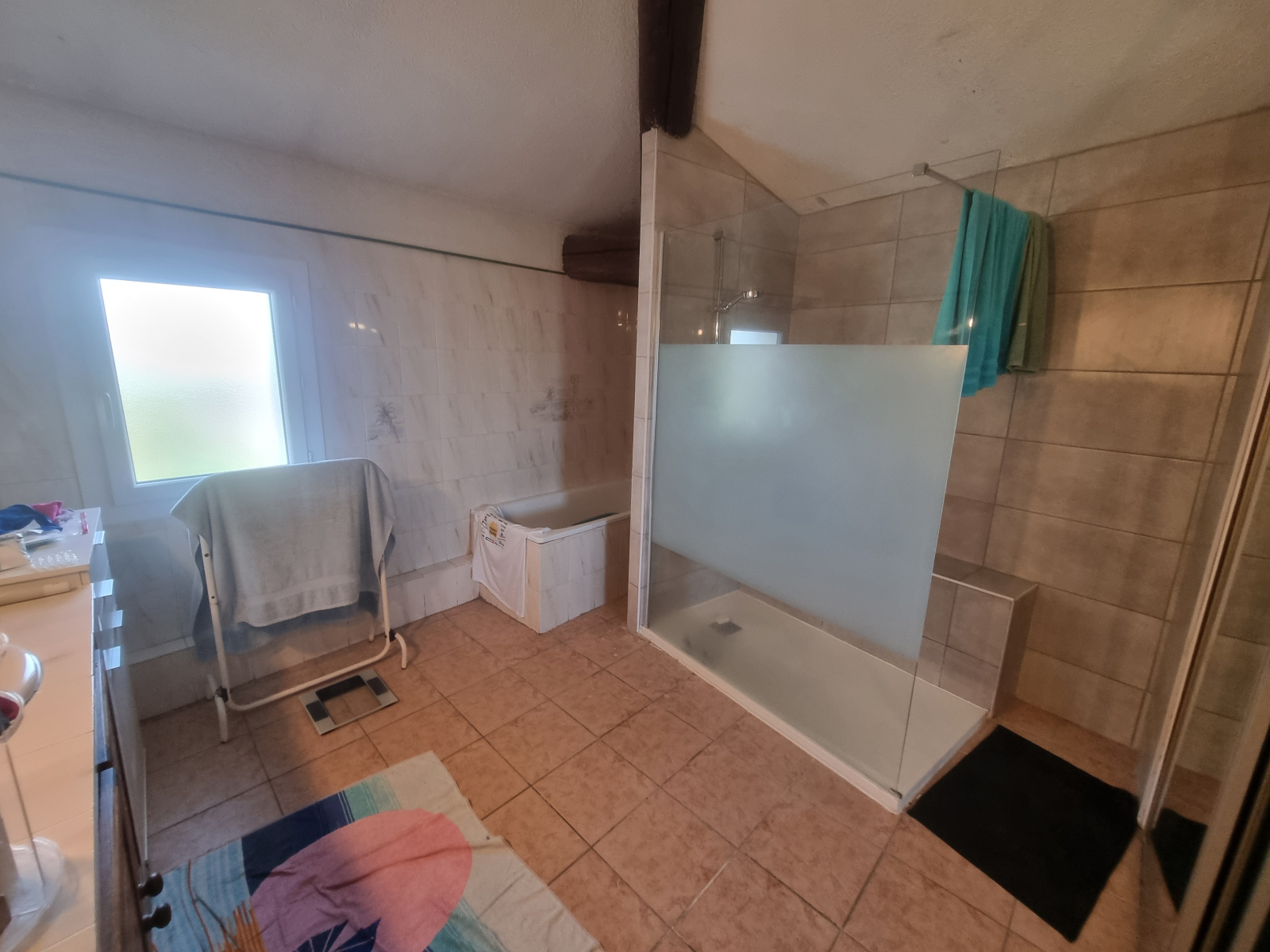 A l'étage 2 chambres volumineuse, une salle de bain avec douche et baignoire et un wc séparé.