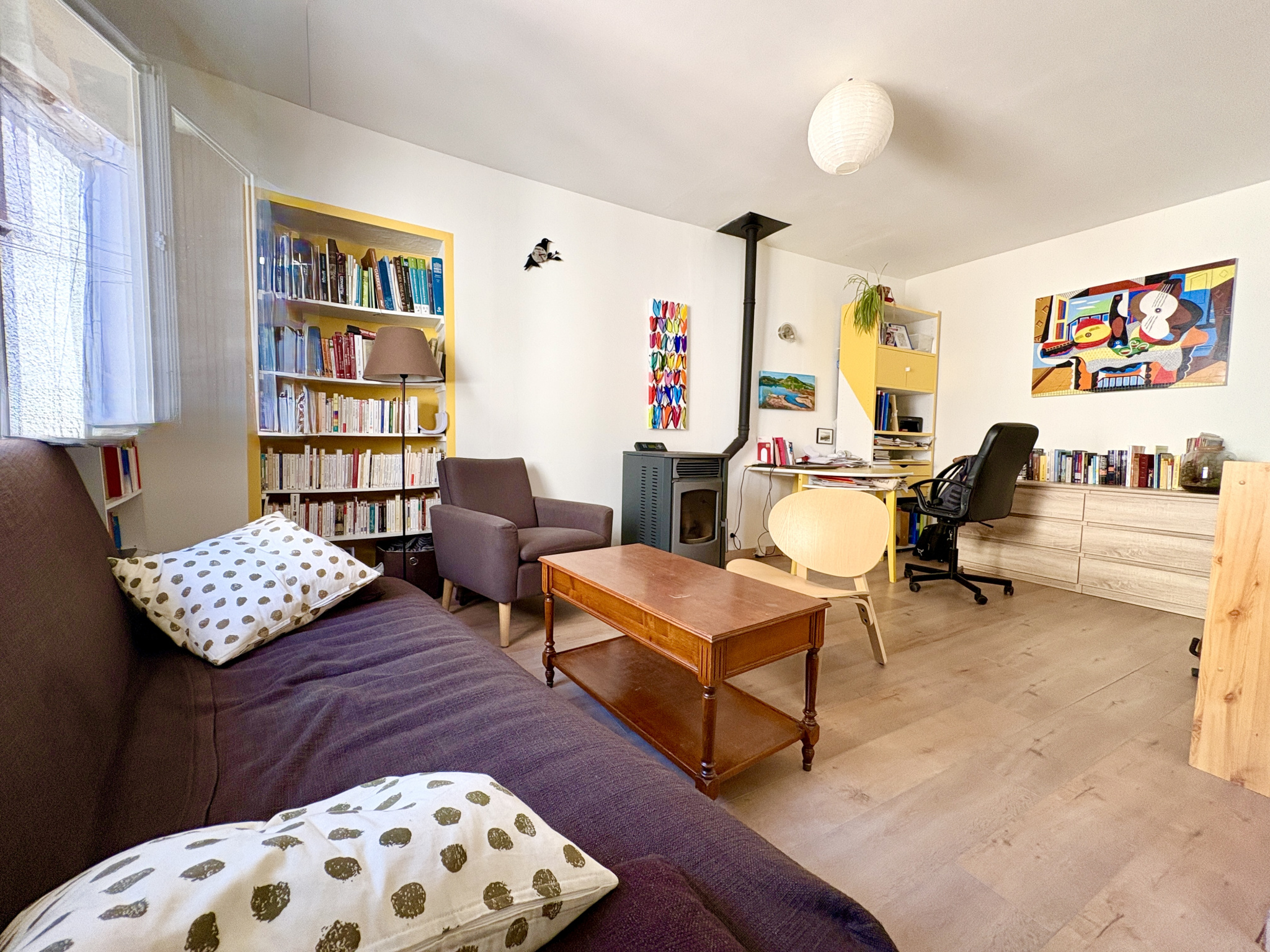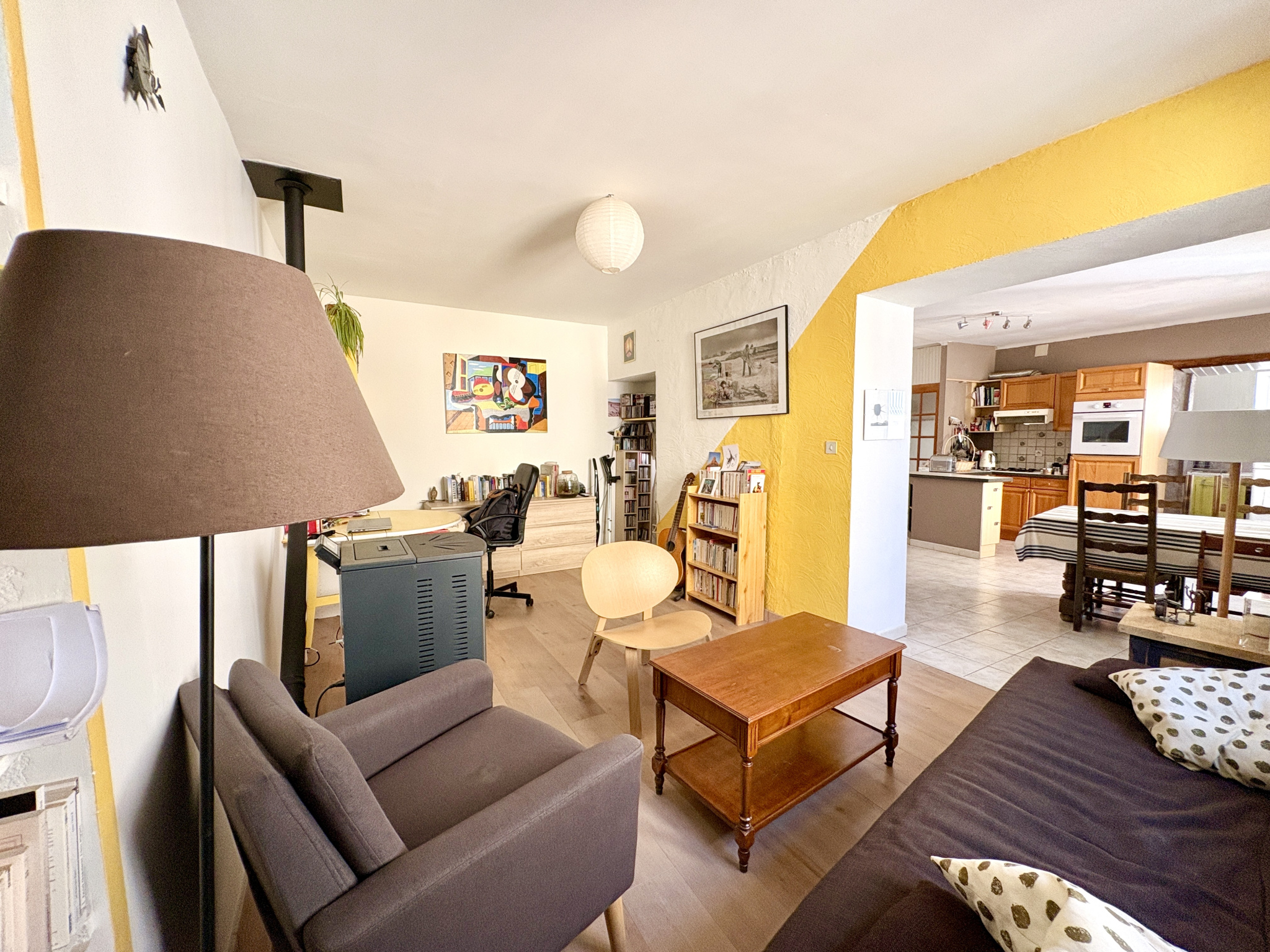 Maison d’angle, agréable à vivre, équipée de double vitrage, climatisation réversible et poêle à granulés. Façade en cours de rénovation. Stationnement à proximité immédiate.
