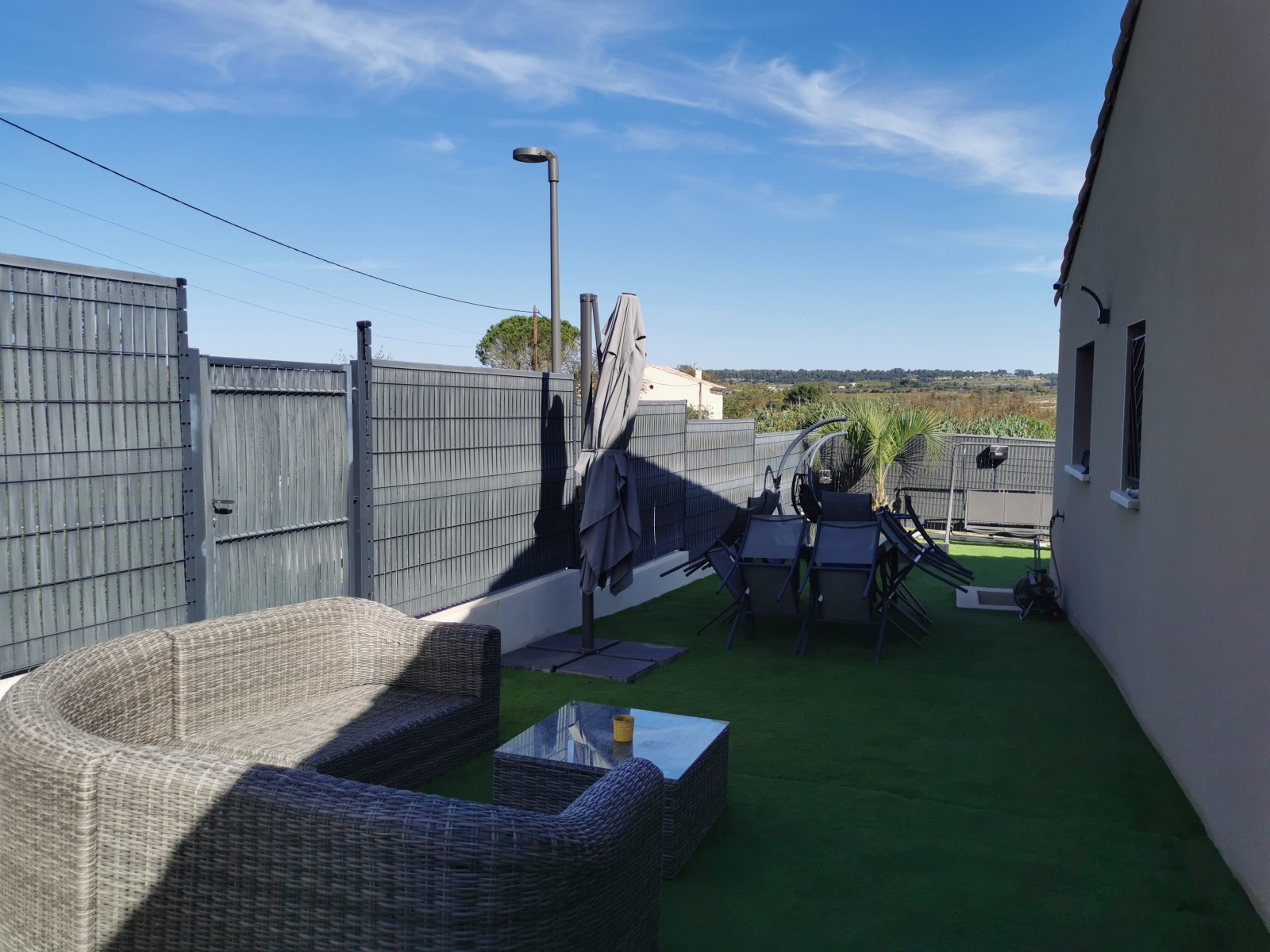 Pézenas (34120)Sur la très jolie commune de Saint Pons de Mauchiens, entre Clermont 'Hérault et Pézenas, non loin de la A75 se trouve cette villa récente de 90m². Elle se situe dans un lotissement calme de cinq villas avec une vue imprenable sur la garrigue.