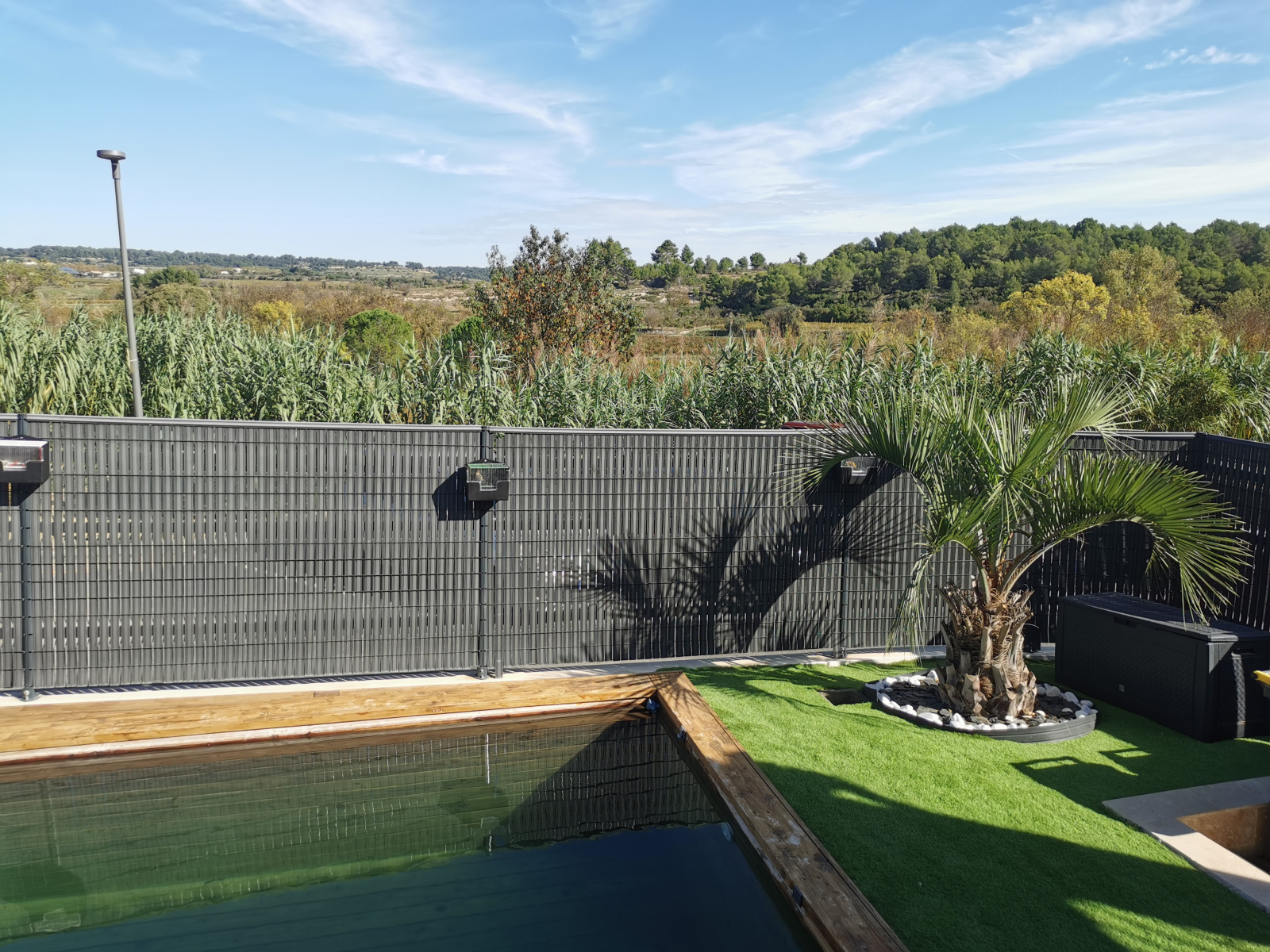 Dans le jardi , un bassin en bois avec lampe à UV et dosage à oxygène pour vous rafraîchir...piscine naturelle!