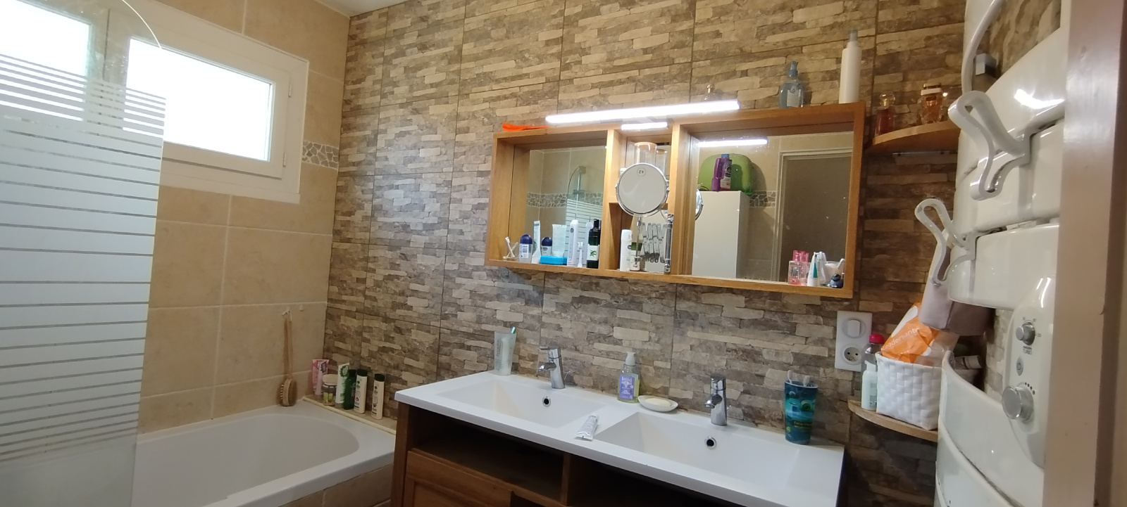 Saint-André-de-Sangonis (34725)Dans une impasse calme , à proximité immédiate de tous commerces et commodités ( collège, école....) , à cinq minutes de l'A75, venez découvrir cette villa indépendante de plain-pied , sans mitoyenneté ,cette villa offre quatres chambres dont une avec sa propre douche , un séjour-salon avec sa cuisine ouverte équipée,une buanderie ,une salle de bain , deux wc , combles aménageables, climatisation gainable , avec un jardin de 65Om², arboré et bien exposé , coin barbecue maçonné inclus , terrain piscinable .