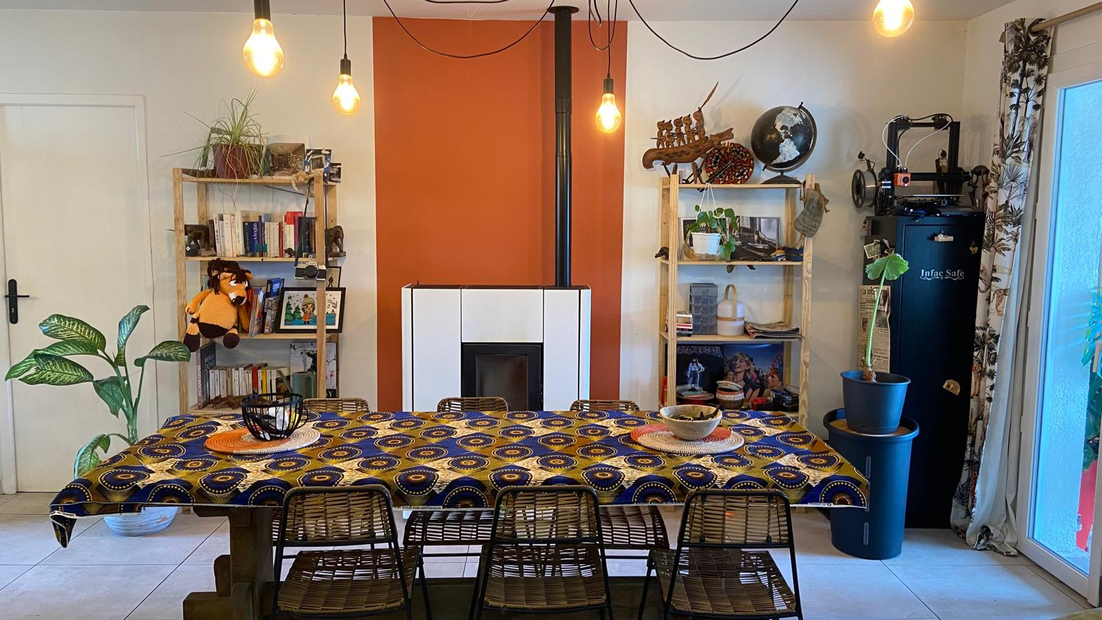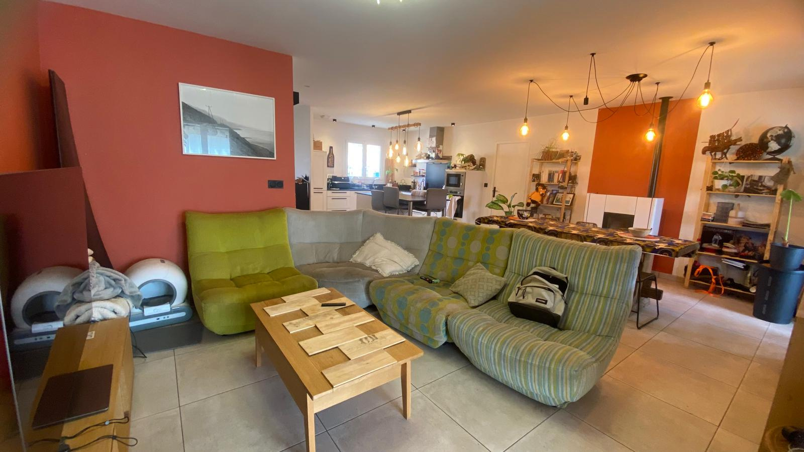 La maison s’articule autour d’une pièce de vie de 45 m² avec cuisine ouverte CUISINELLA, fonctionnelle et bien agencée, et un espace salon-séjour équipé d’un poêle à granulés. L’ensemble est lumineux, confortable et facile à vivre.