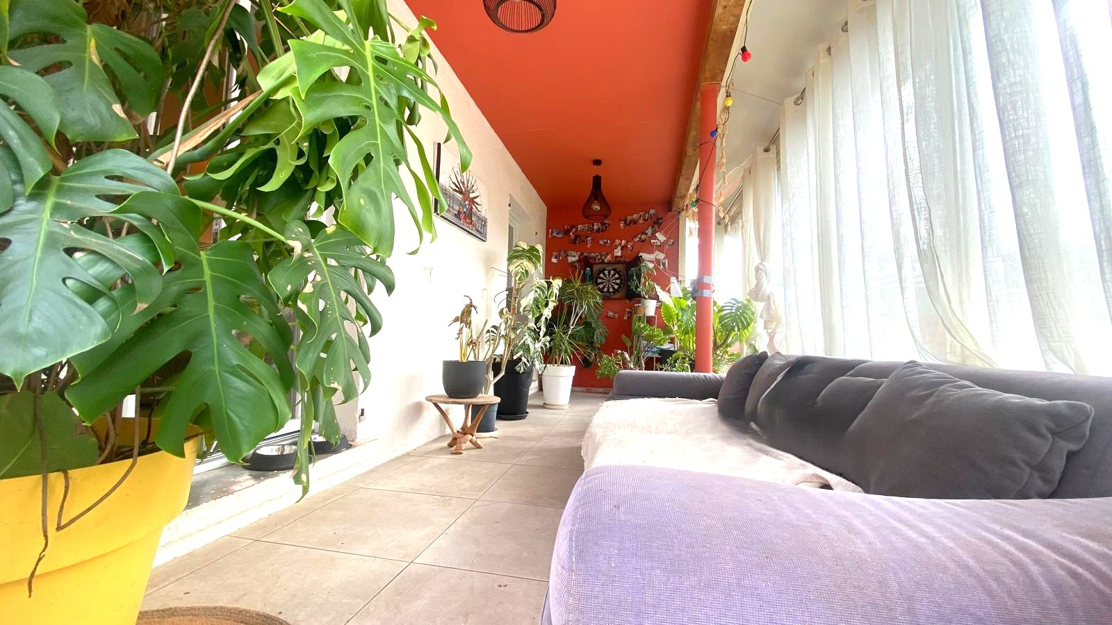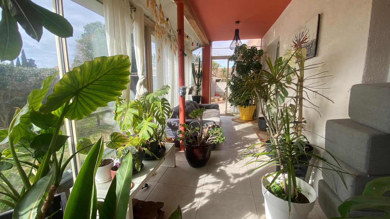 Attenante au séjour, une véranda offre un espace supplémentaire agréable, tourné vers le jardin, idéal comme pièce de détente ou coin repas.