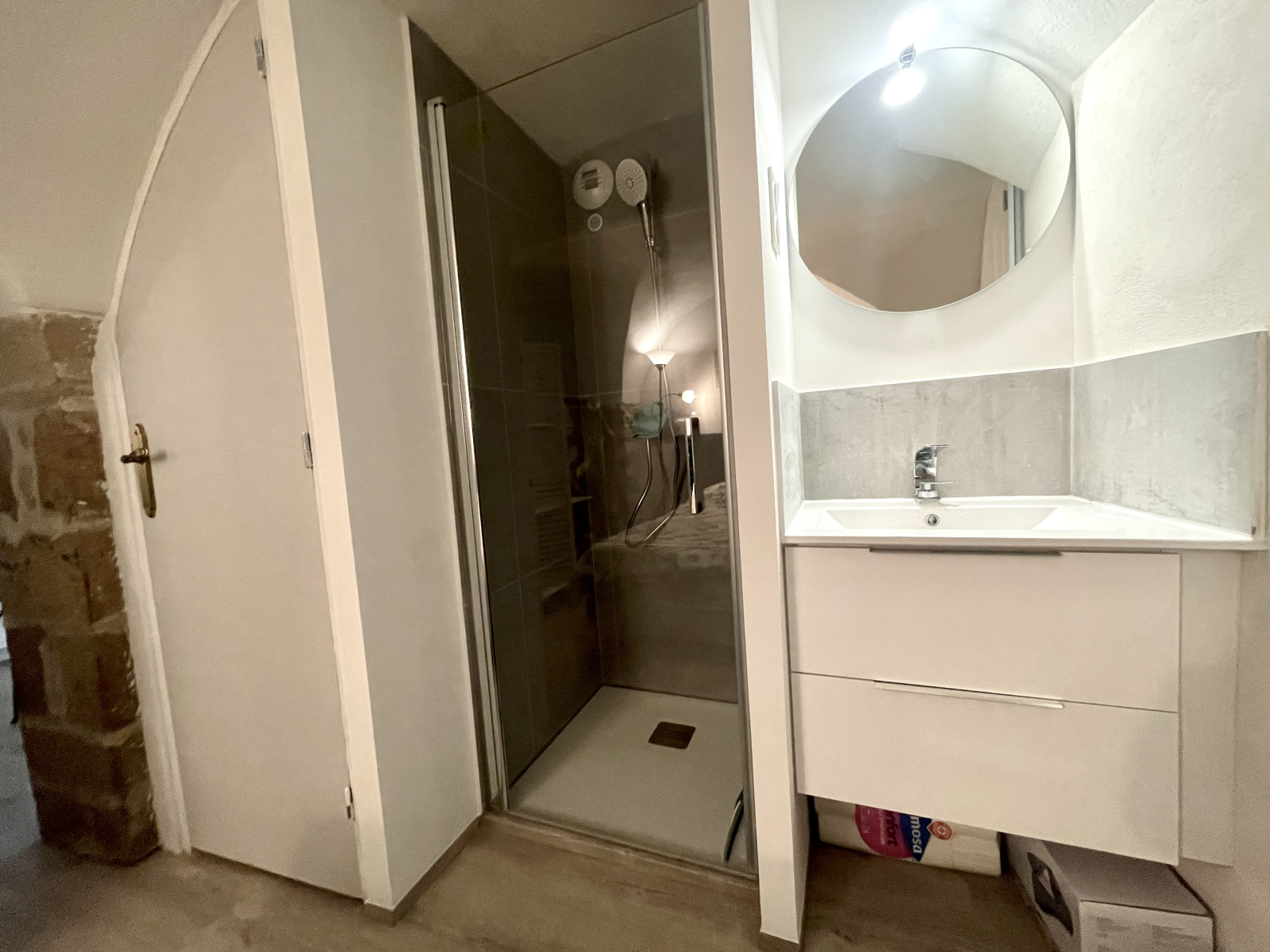 Le rez-de-chaussée abrite un studio indépendant, parfait pour accueillir des invités ou pour un usage locatif. On trouve une forte demande sur le village avec le chemin de Saint jacques de compostelle.