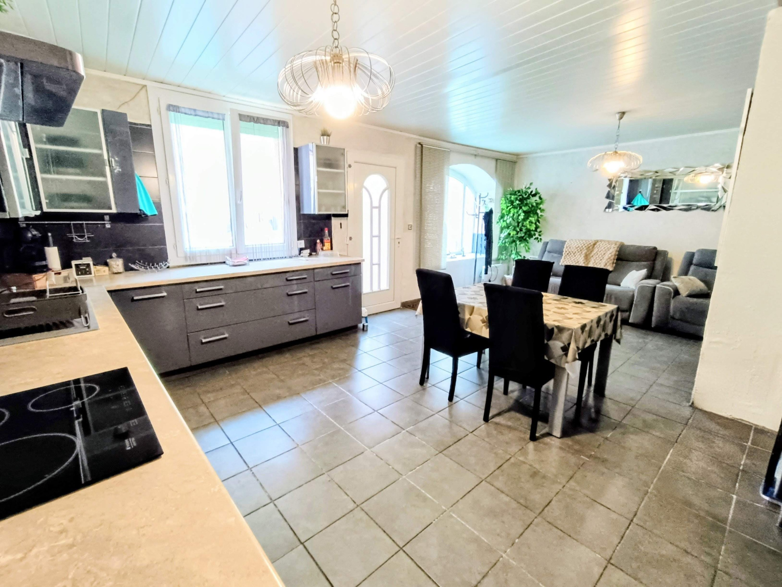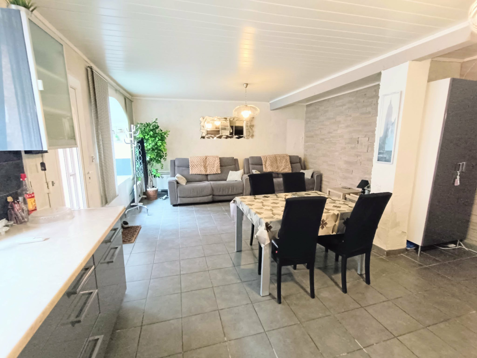 La seconde habitation 66m2 (refaite entièrement) avec accès en rez de chaussée également, Une très belle pièce de vie de 32m2 avec cuisine entièrement équipée. Une chambres avec de grands placards et un coin nuit (sans fenêtre). Il y a une belle salle d'eau, un wc et l'accès au garage de 27m2 avec portail électrique.