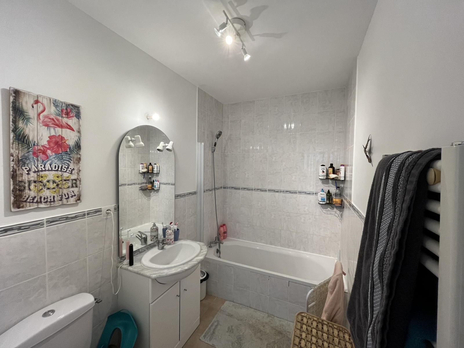 La partie nuit propose deux chambres lumineuses, dont une suite avec salle d’eau privative, ainsi qu’une salle de bain supplémentaire.