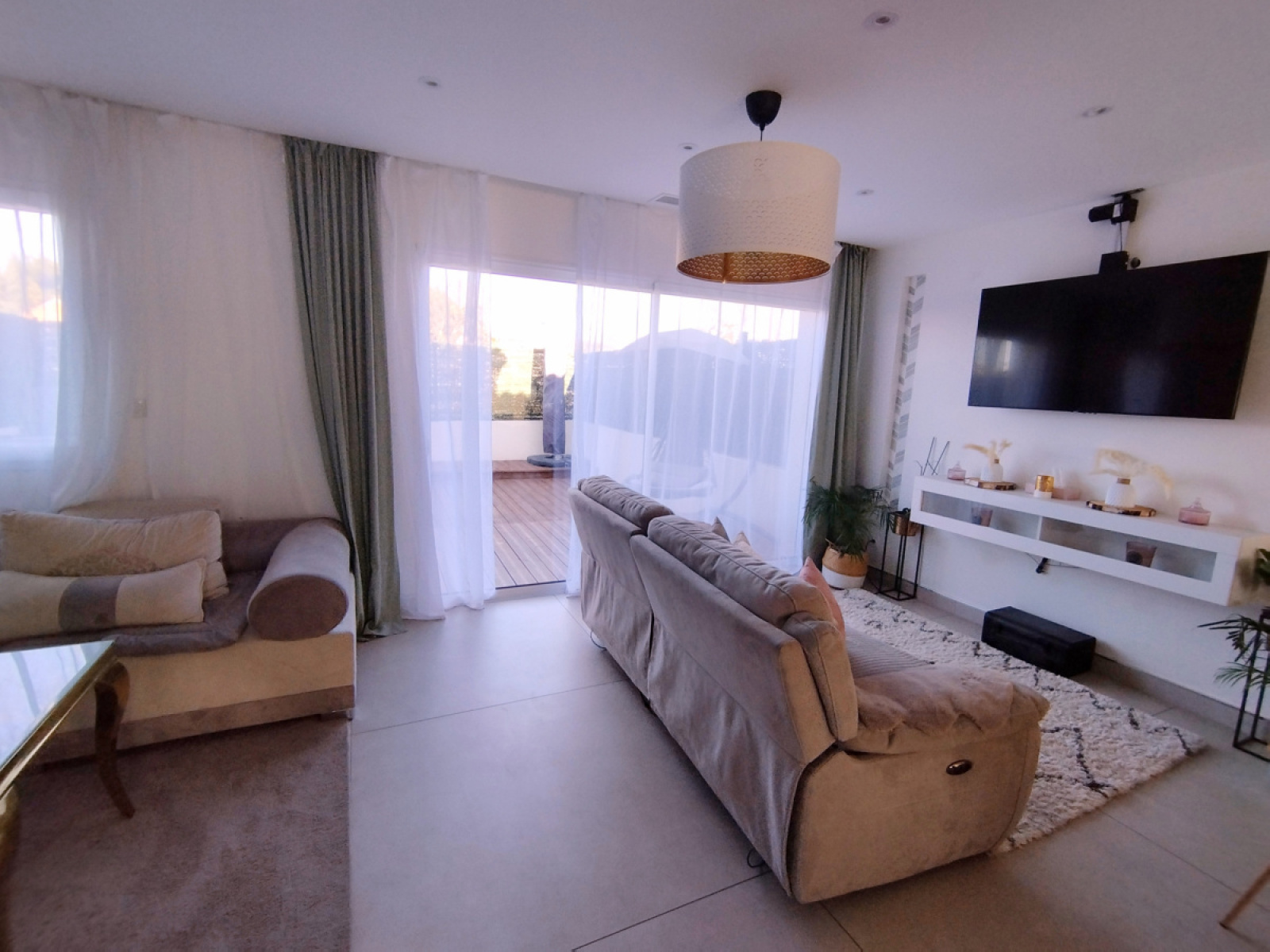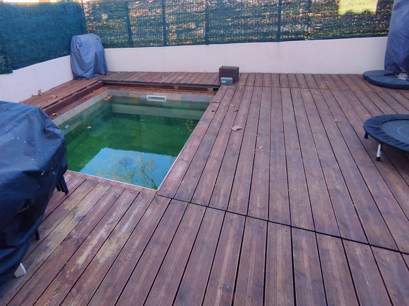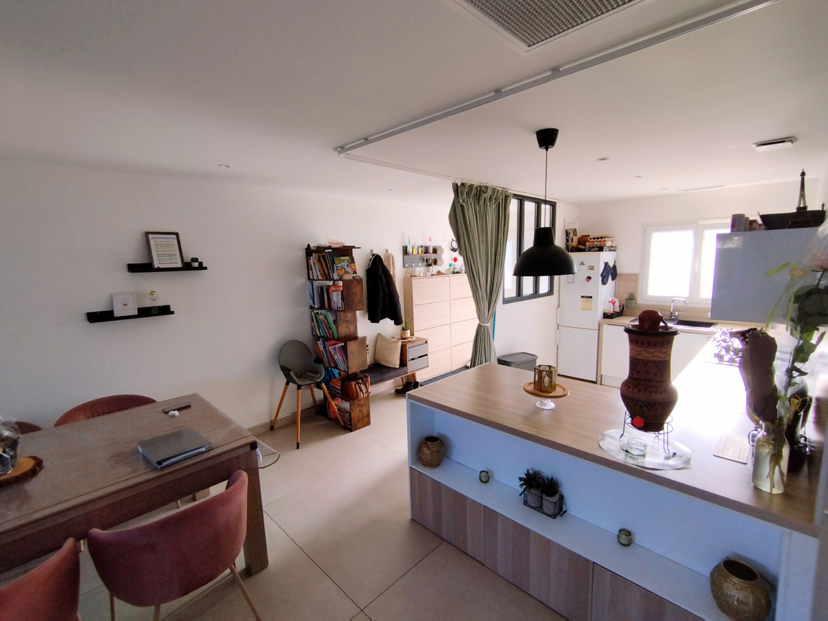 Dès l’entrée, vous découvrez une pièce de vie de 40 m² avec cuisine moderne aménagée et équipée, ouverte directement sur la terrasse en bois et l’espace piscine, idéale pour profiter des beaux jours en toute intimité.