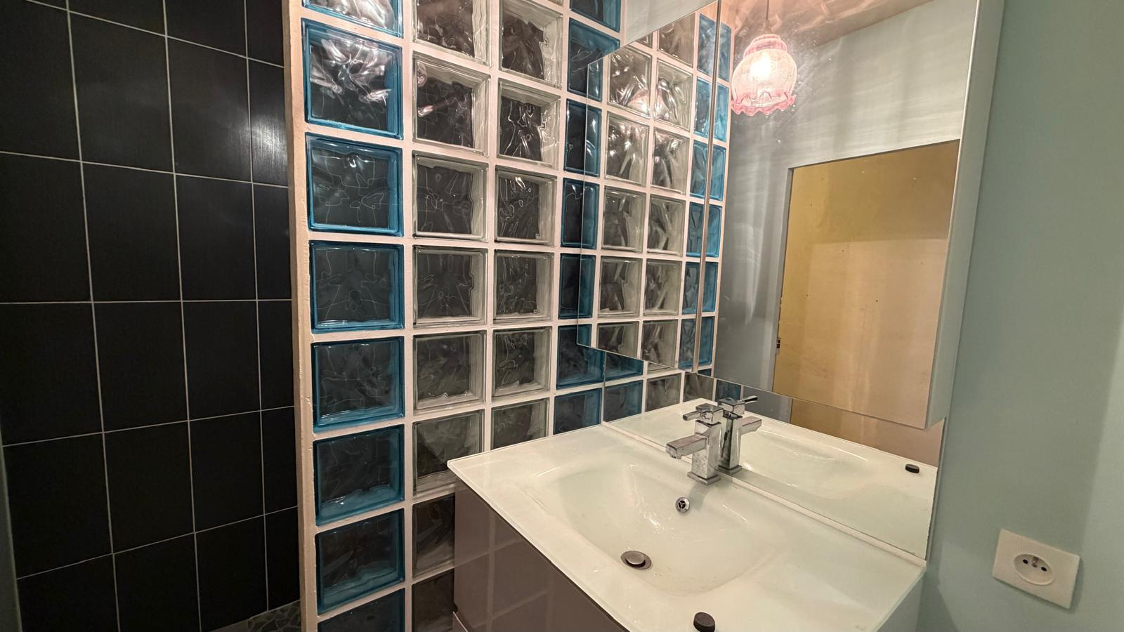 1er étage : espace habitation avec séjour, cuisine, chambre à rénover et une salle de bains en très bon état, équipé de menuiseries PVC double vitrage.