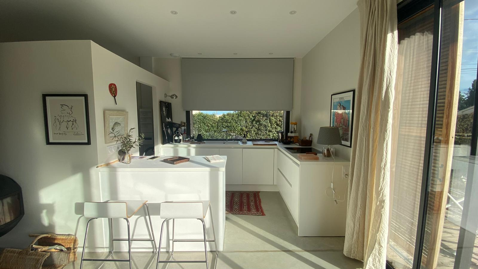 Les deux pièces s’ouvrent sur l’extérieur dans une atmosphère calme et épurée.