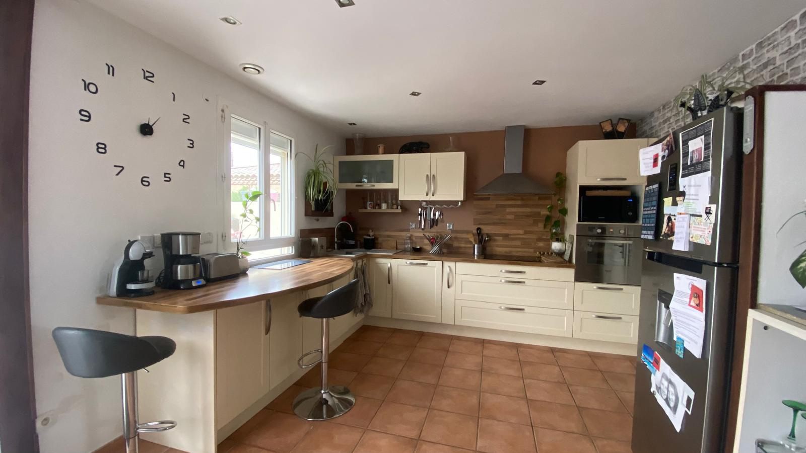 Idéalement située dans un environnement paisible, à cinq minutes à pied de la forêt communale et proche du Canal du Midi, cette maison offre un cadre de vie privilégié alliant calme, confort et praticité au quotidien. La vaste pièce de vie de plus de 42 m² séduit par sa luminosité et son agencement fluide, avec une cuisine LAPEYRE ouverte entièrement équipée, un poêle à bois et un accès direct à la terrasse. L’espace nuit comprend trois chambres : une de 11,30 et deux de 12,30 m² ; un bureau de 8 m² et une salle de bains de 6 m² et un WC séparé complètent le tout.