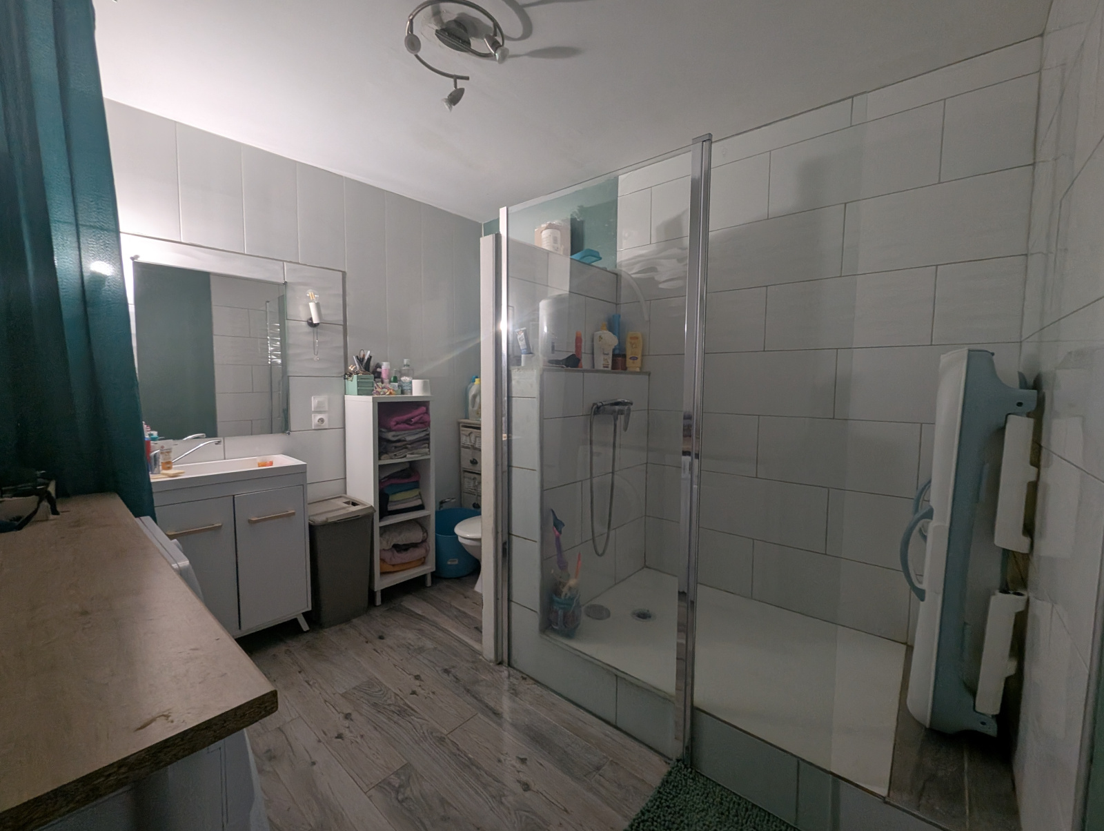 1er étage : Un palier desservant deux belles chambres de 16 m² et 12 m² avec placards, une grande salle d'eau de presque 8 m², avec douche, coin buanderie et WC