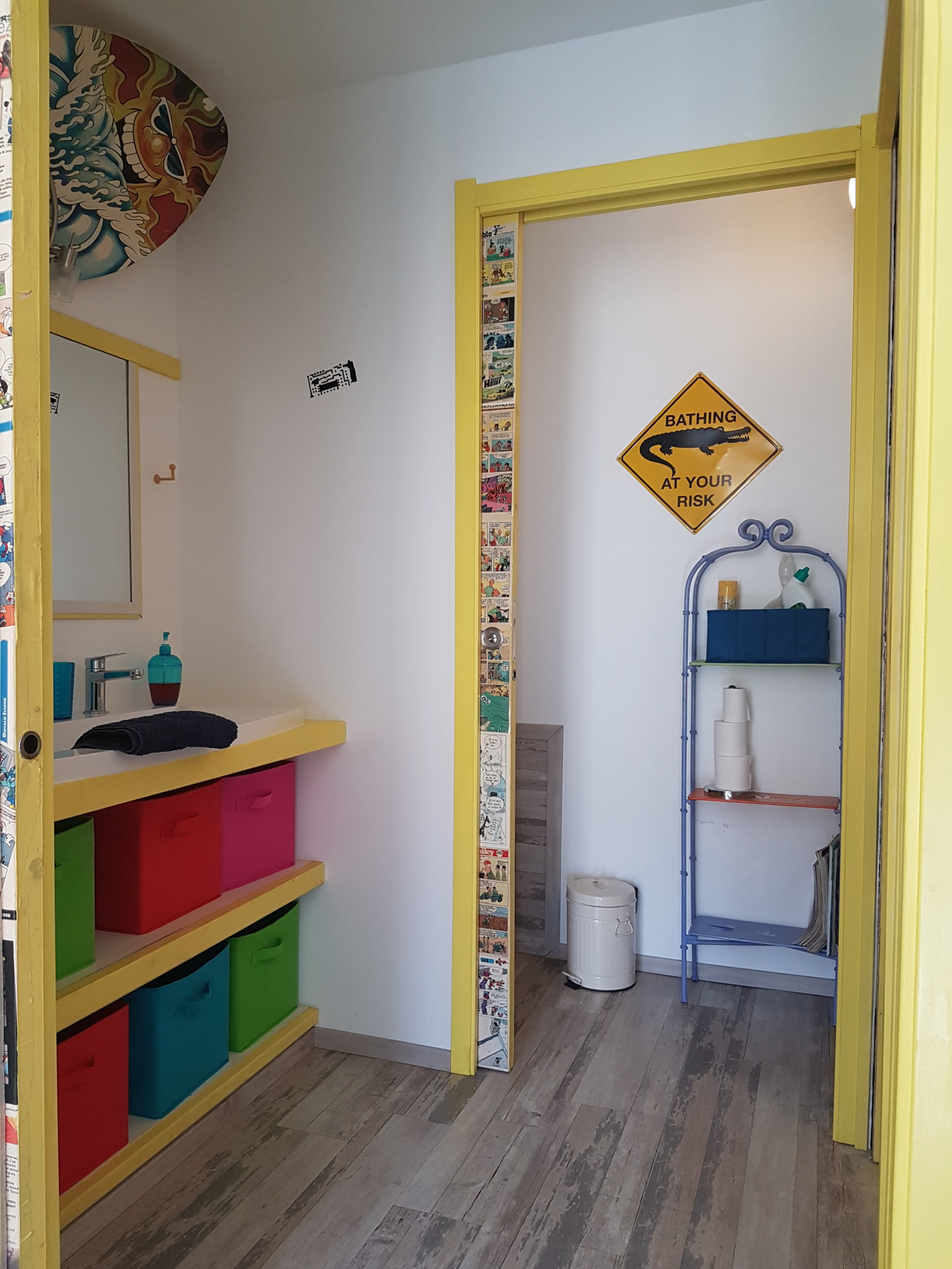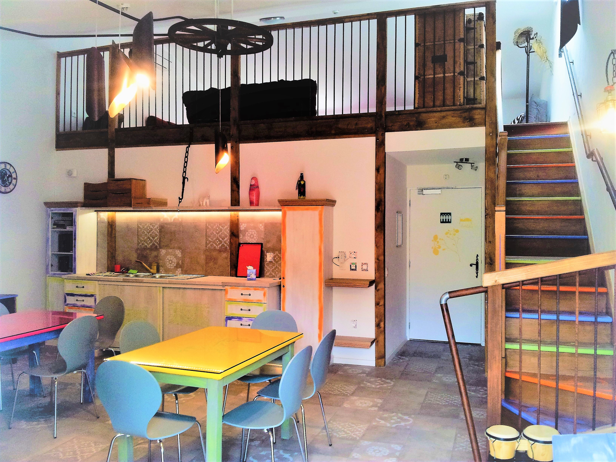 Le gîte, atypique, lumineux et coloré, est entièrement adapté à tous types de handicaps et répond aux normes de sécurité incendie et d’accessibilité. Il bénéficie du label Tourisme & Handicap ainsi que des agréments Jeunesse et Sports. Il se compose de plusieurs chambres avec salles d’eau privatives, dont une chambre PMR en rez-de-chaussée, d’un dortoir adapté accessible par ascenseur, d’un studio indépendant, d’une grande salle d’activités reliée à un salon d’expression mansardé, d’un séjour avec cuisine ouverte entièrement accessible en fauteuil roulant, ainsi que de nombreux espaces fonctionnels dédiés à l’exploitation du lieu.