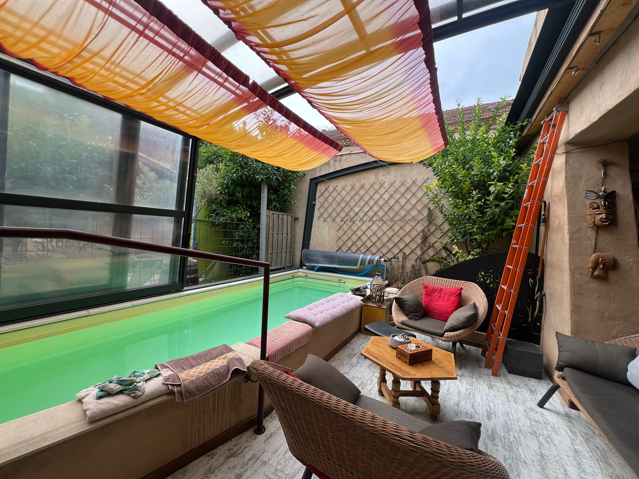 À l’extérieur, plusieurs terrasses viennent enrichir le confort de vie, dont une grande terrasse d’hiver couverte avec cuisine d’été, rangements et cheminée, ainsi qu’un espace piscine plein sud avec bassin chauffé, balnéothérapie, nage à contre-courant et équipements de rééducation. L’ensemble est pensé pour offrir bien-être, intimité et modularité selon les usages.