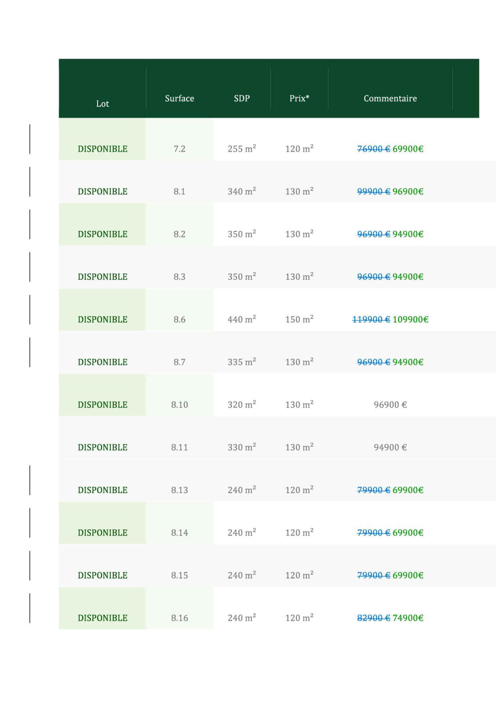 12 terrains sont encore disponibles allant de 240 m² 440 m² et de 69.900 € FAI à 109.900 € FAI.